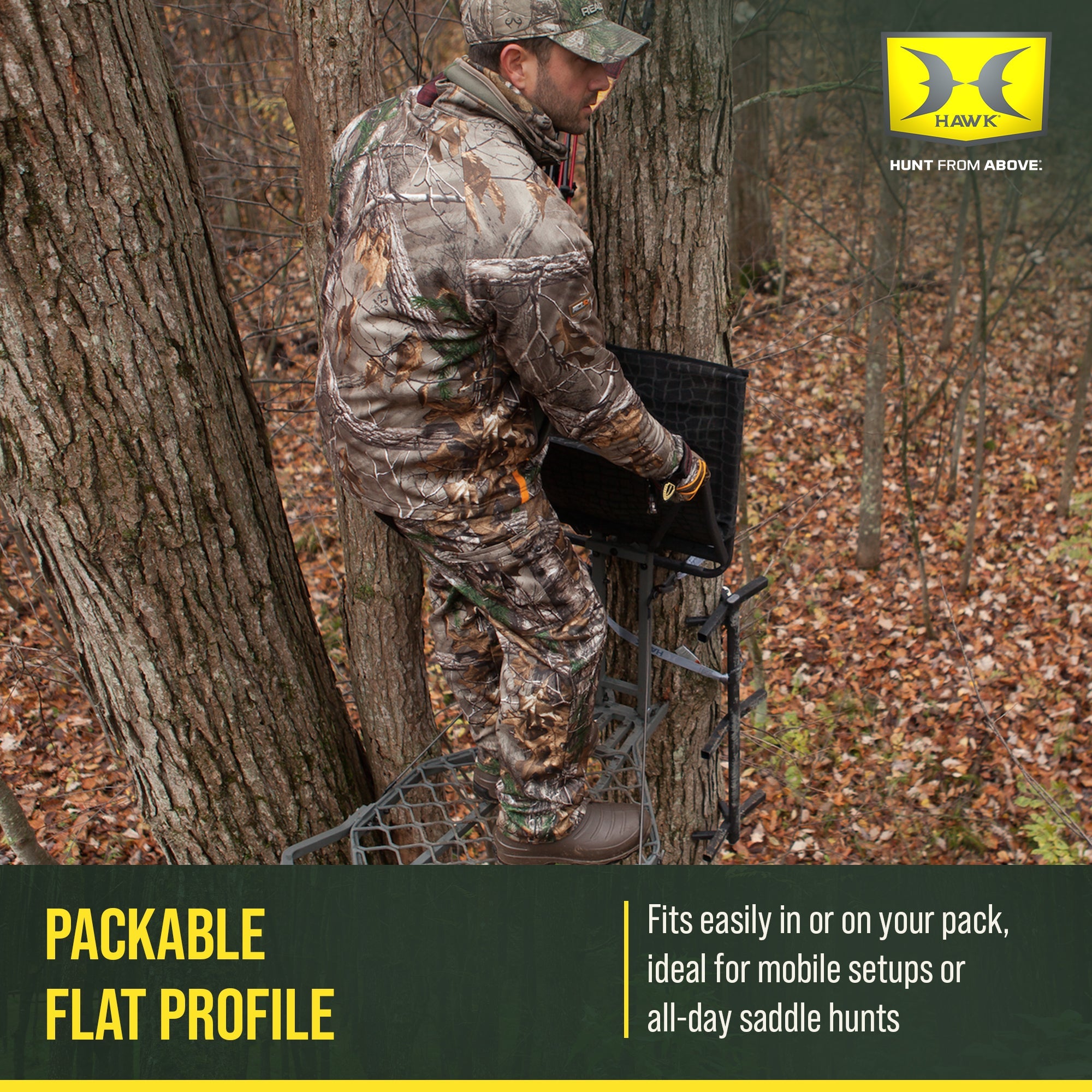Hunt from one of the most comfortable seats in the woods. The Hawk Kickback LVL Hang-On Tree Stands feature an extra-large, contoured mesh comfort lounger seat that deliver zero-pressure comfort, allowing you to wait in comfort for game.