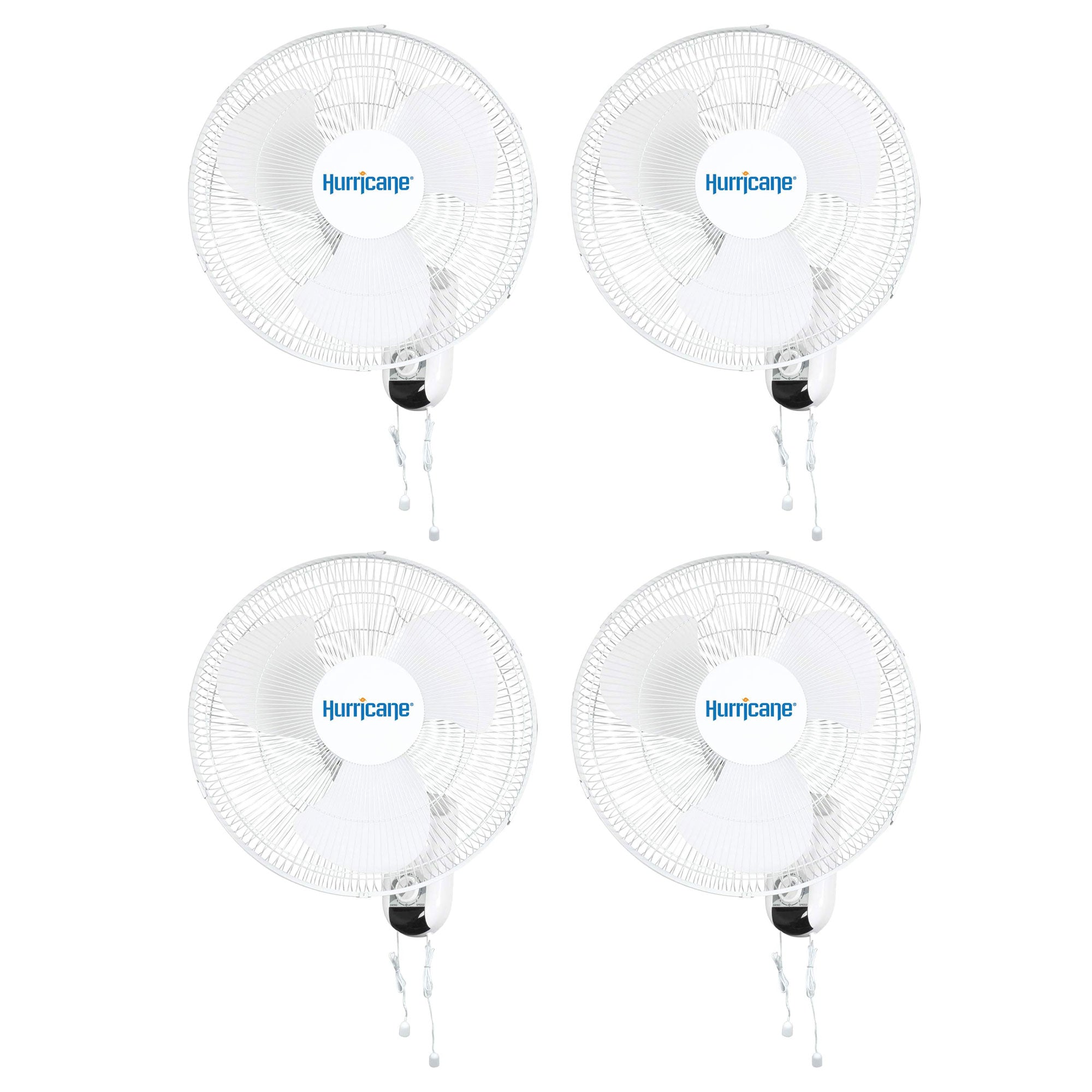 Enhance your environment with the 4-pack of 16-inch Classic Corded Electric Oscillating Wall Mount Fan from Hurricane where performance, durability, and versatility converge for superior air circulation in any space.