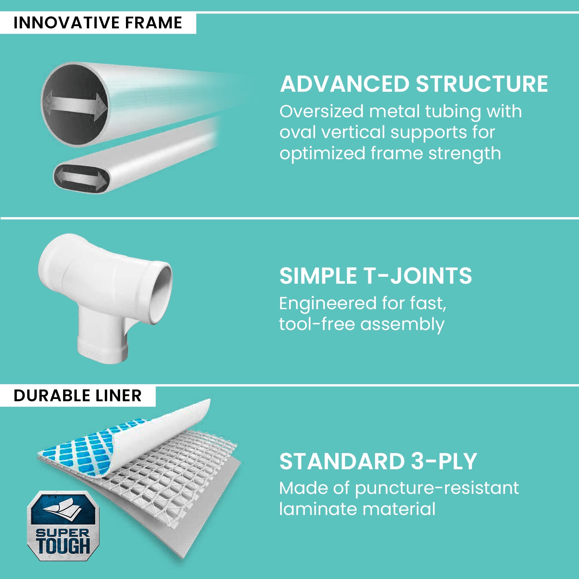 - An affordable and easy-to-set-up alternative to more complicated steel-walled pools, and a more durable alternative to inflatable models