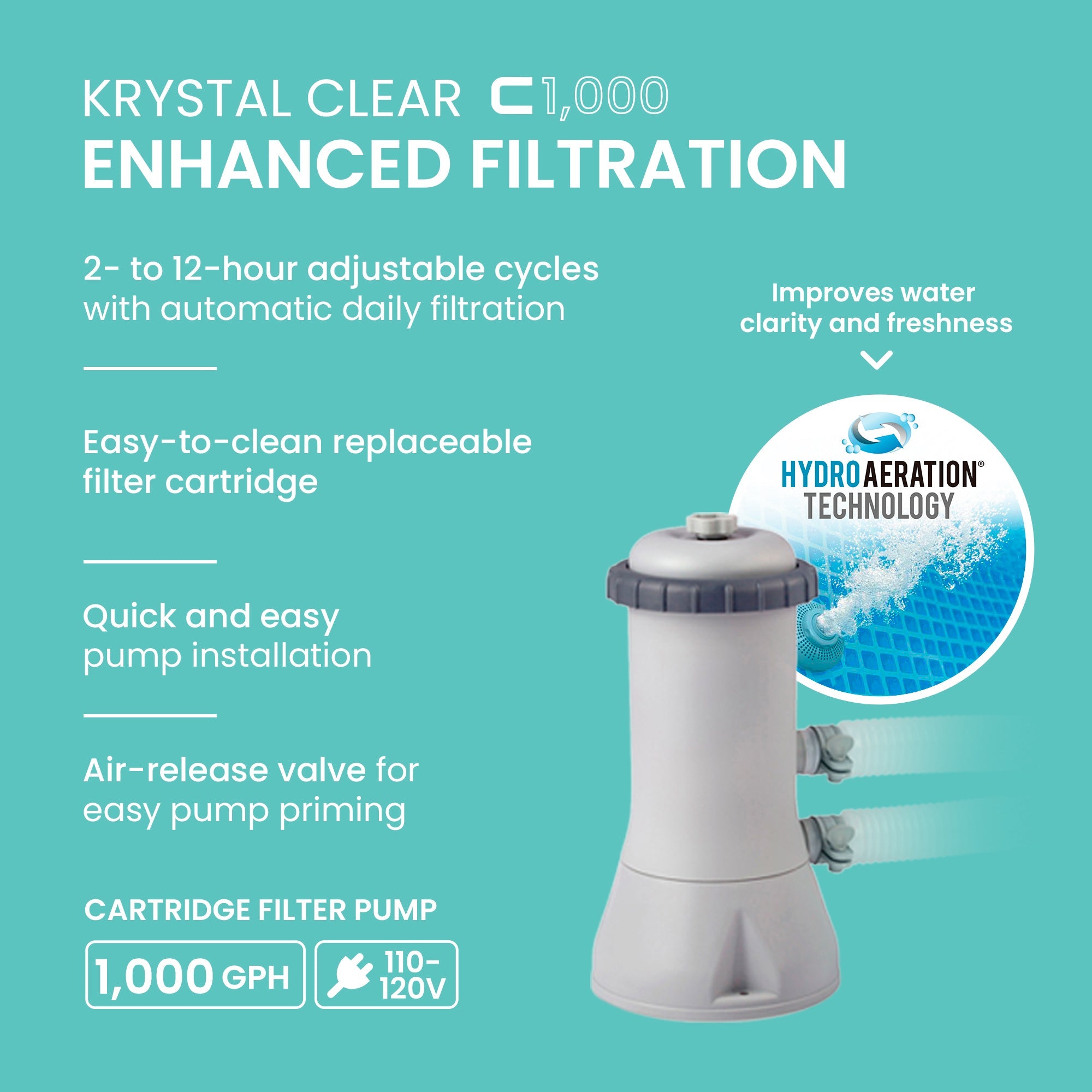 - Intex 1,000 GPH filter pump and filter included helping keep your water sparkling and clean