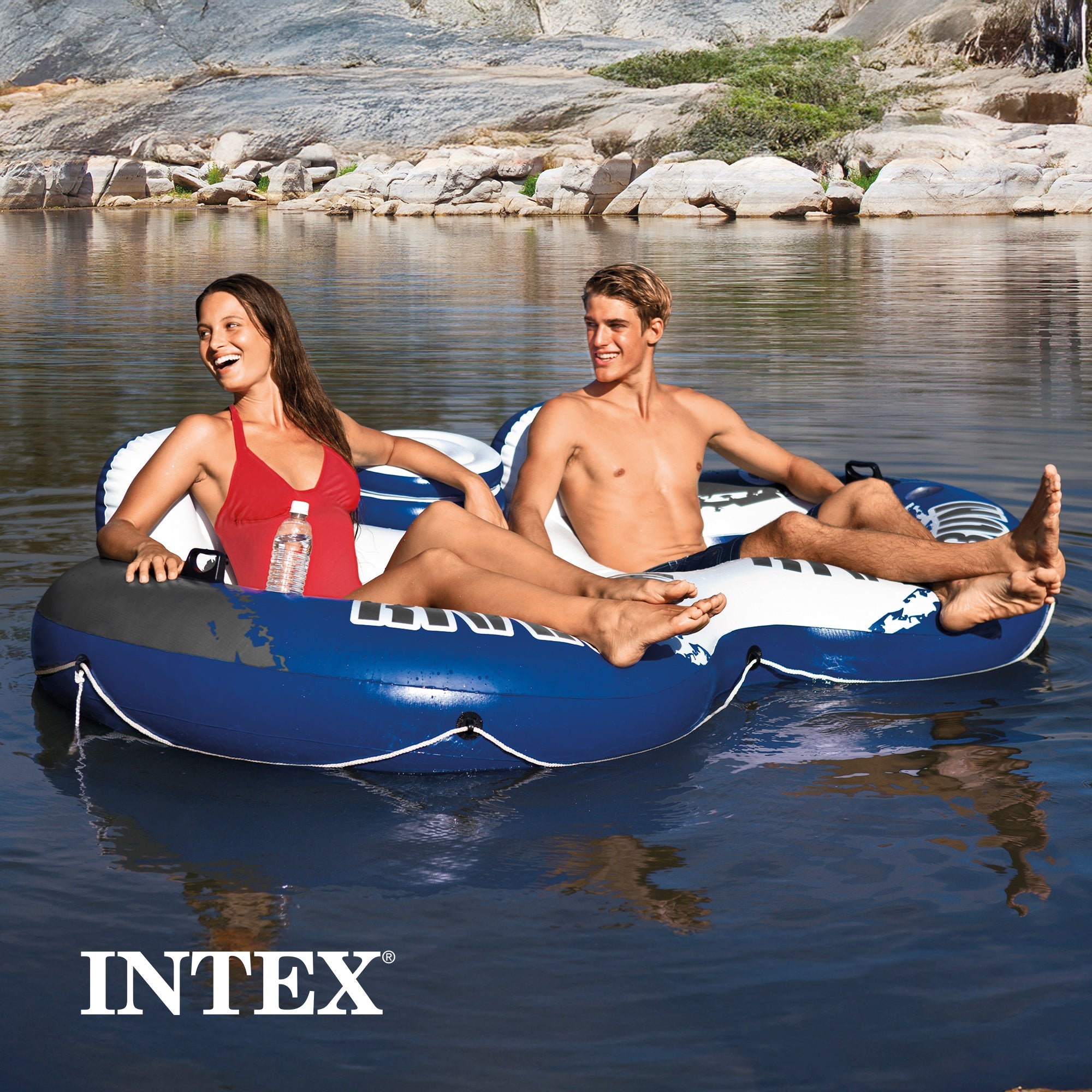 - The Intex River Run II inflatable raft/lounge comfortably fits 2 people