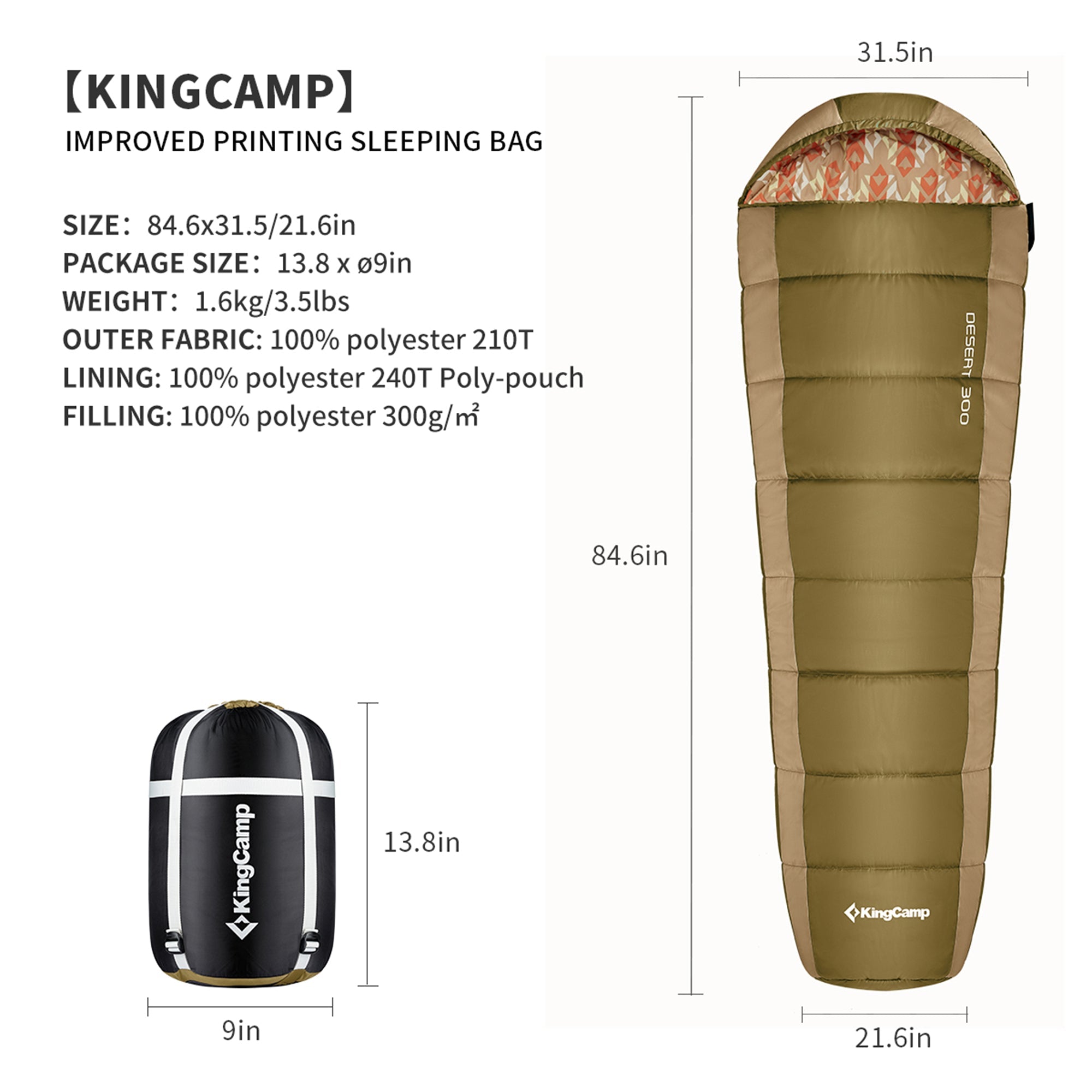 - Outer cover material is polyester ripstop, waterproof fabric filled with 300g/㎡ hollow fiber, suitable for 3 seasons