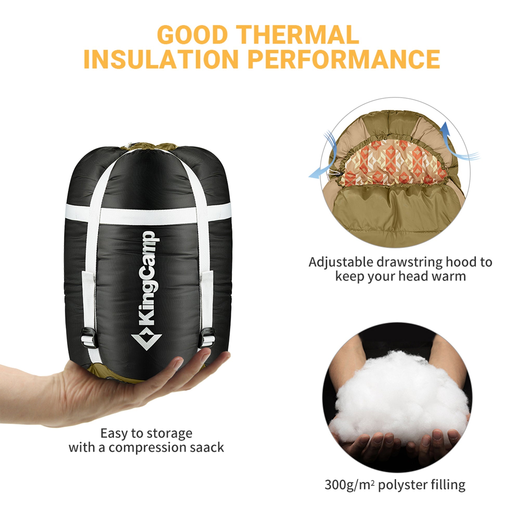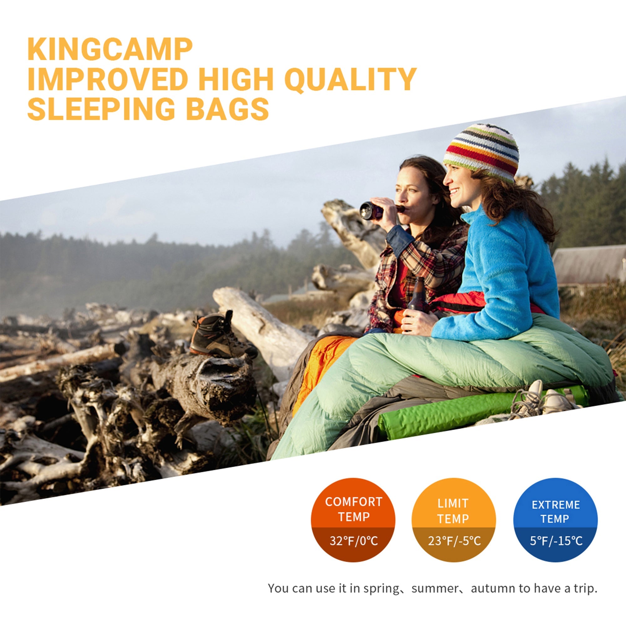 Don't let cool temperatures keep you from enjoying a night under the stars with the KingCamp Ultralight Warm 3-Season Sleeping Bag with Compact Compression Sack.