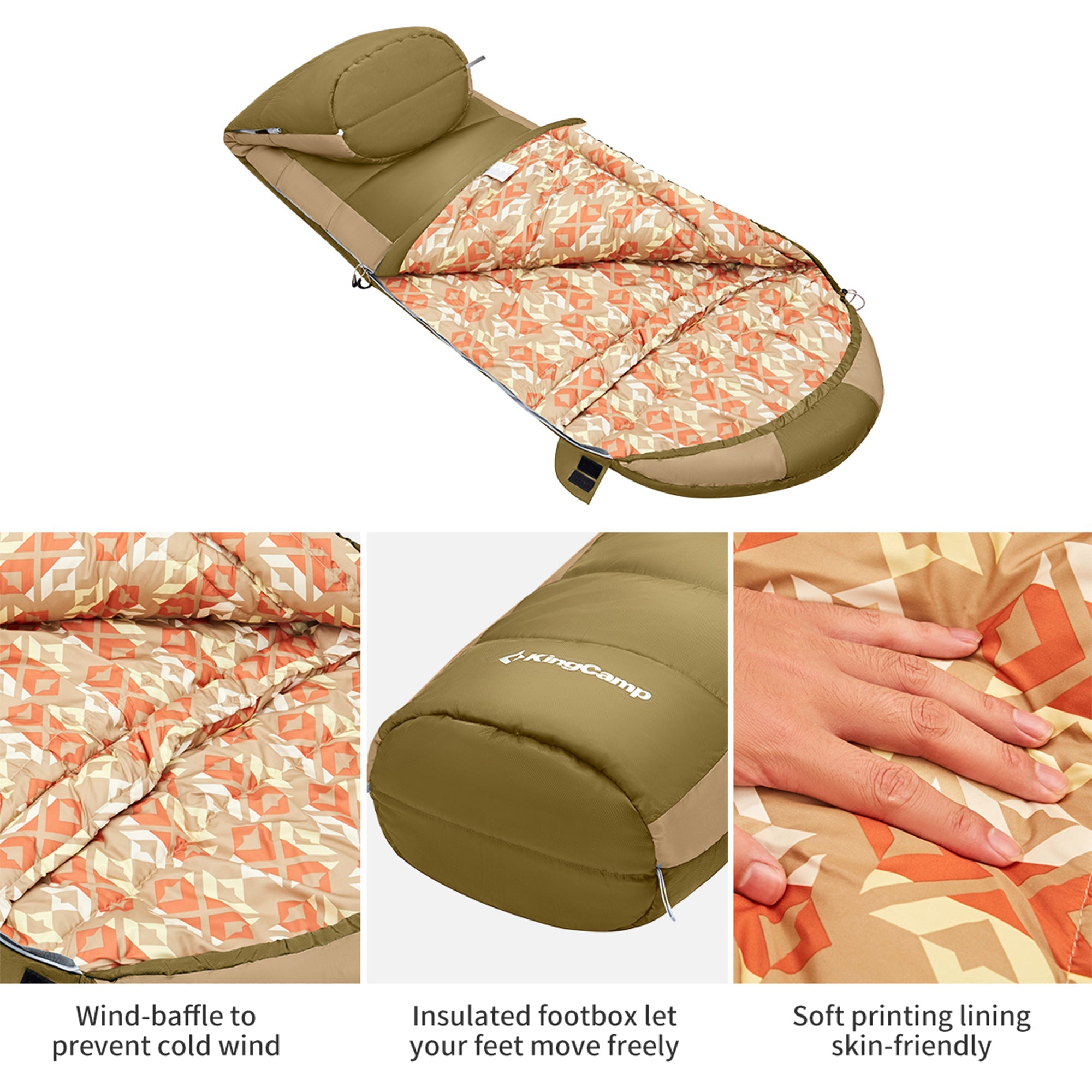 KingCamp Ultralight Warm 3 Season Sleeping Bag w/Compact Compression Sack, Olive