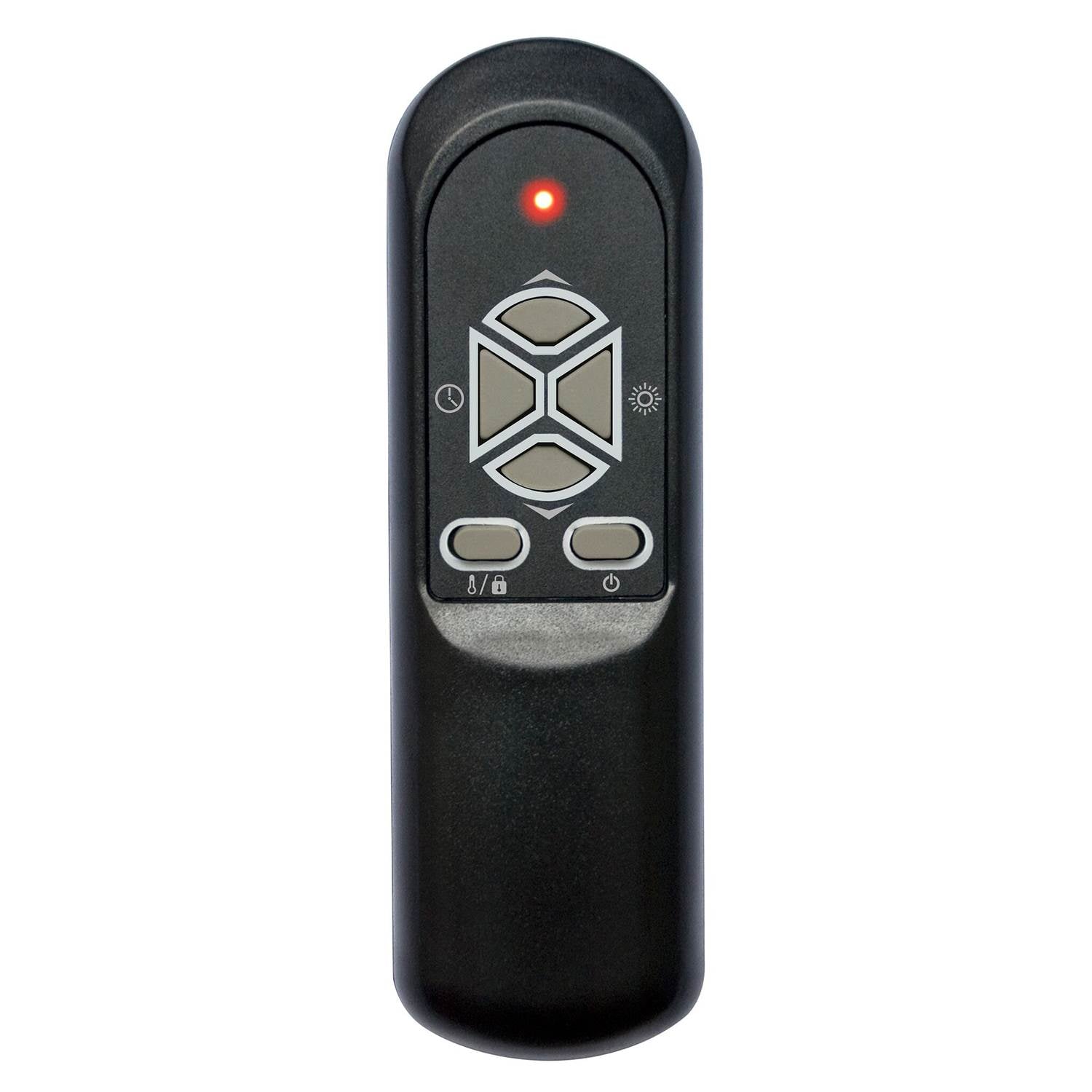 This heater delivers 1,500 watts of power through 4 quartz heating elements and features a 12 hour programmable timer and 3 heat settings. It also comes with safety features like over-heat and tip-over shut off, a cool touch exterior cabinet, and child lock for peace of mind.