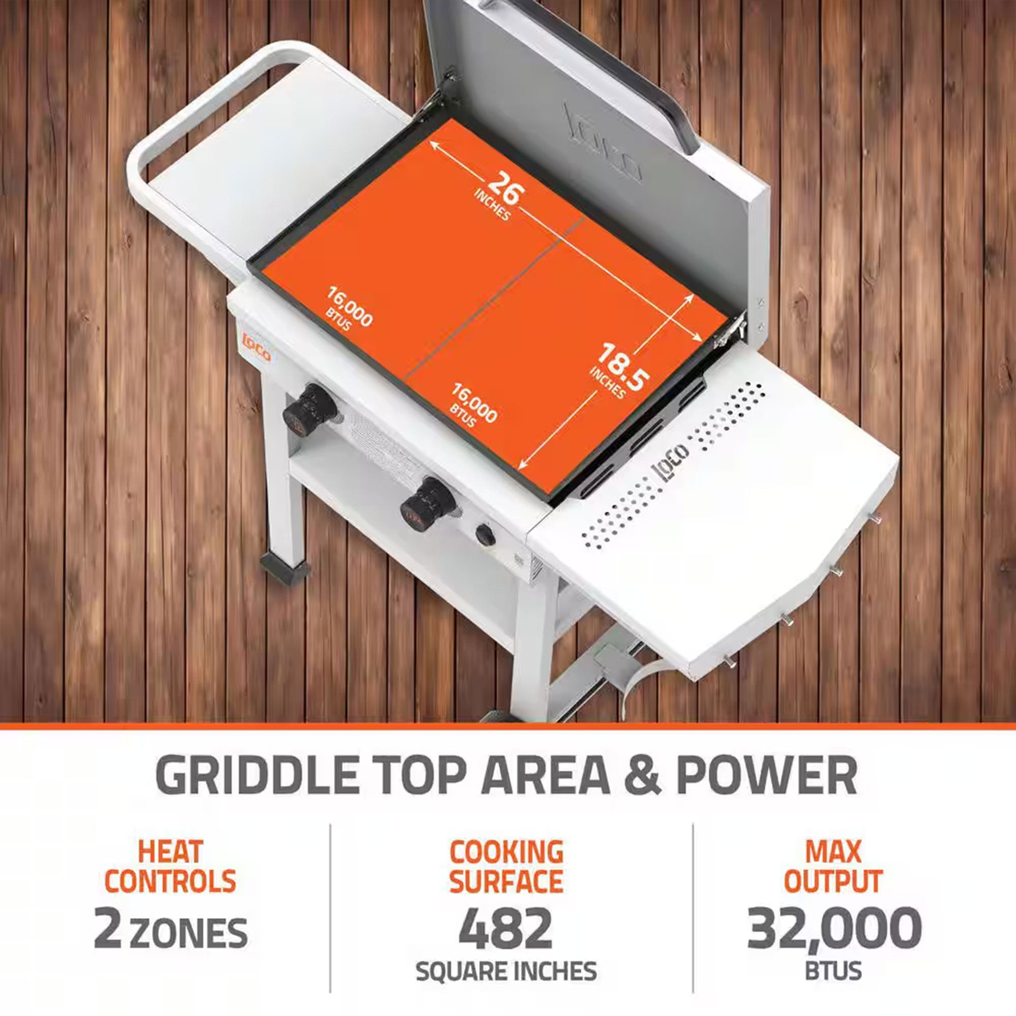 Loco Cookers 2-Burner SmartTemp Griddle Outdoor Flat Top Propane Gas Grill, 26"