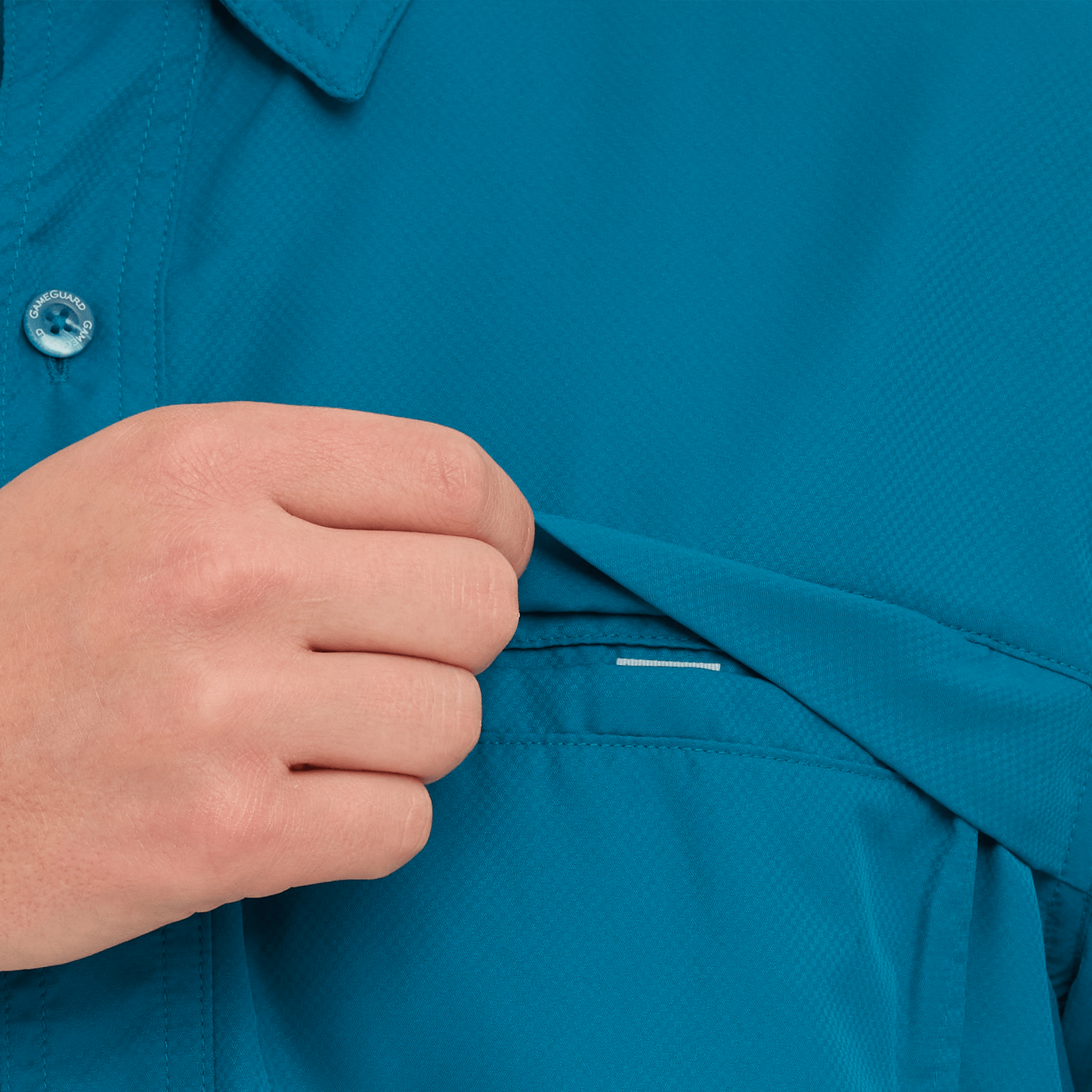 Designed for those who thrive outdoors, the Explorer Shirt is built to perform whether you're tracking game, casting lines, or navigating rugged trails. Its lightweight microfiber construction provides UPF 50+ sun protection, while mesh-lined vents at the chest and back keep you cool in the heat. Quick-drying and wrinkle-resistant, this shirt is as reliable as it is functional. Hidden chest pockets and a lay-flat collar with hidden snaps add practicality without compromising style. Stain resistance ensures the shirt stands up to the demands of the outdoors, while a built-in lens cleaner ensures your gear is always ready. Perfect for hunting, fishing, or exploring, this 100% polyester shirt is your all-in-one solution for adventure.