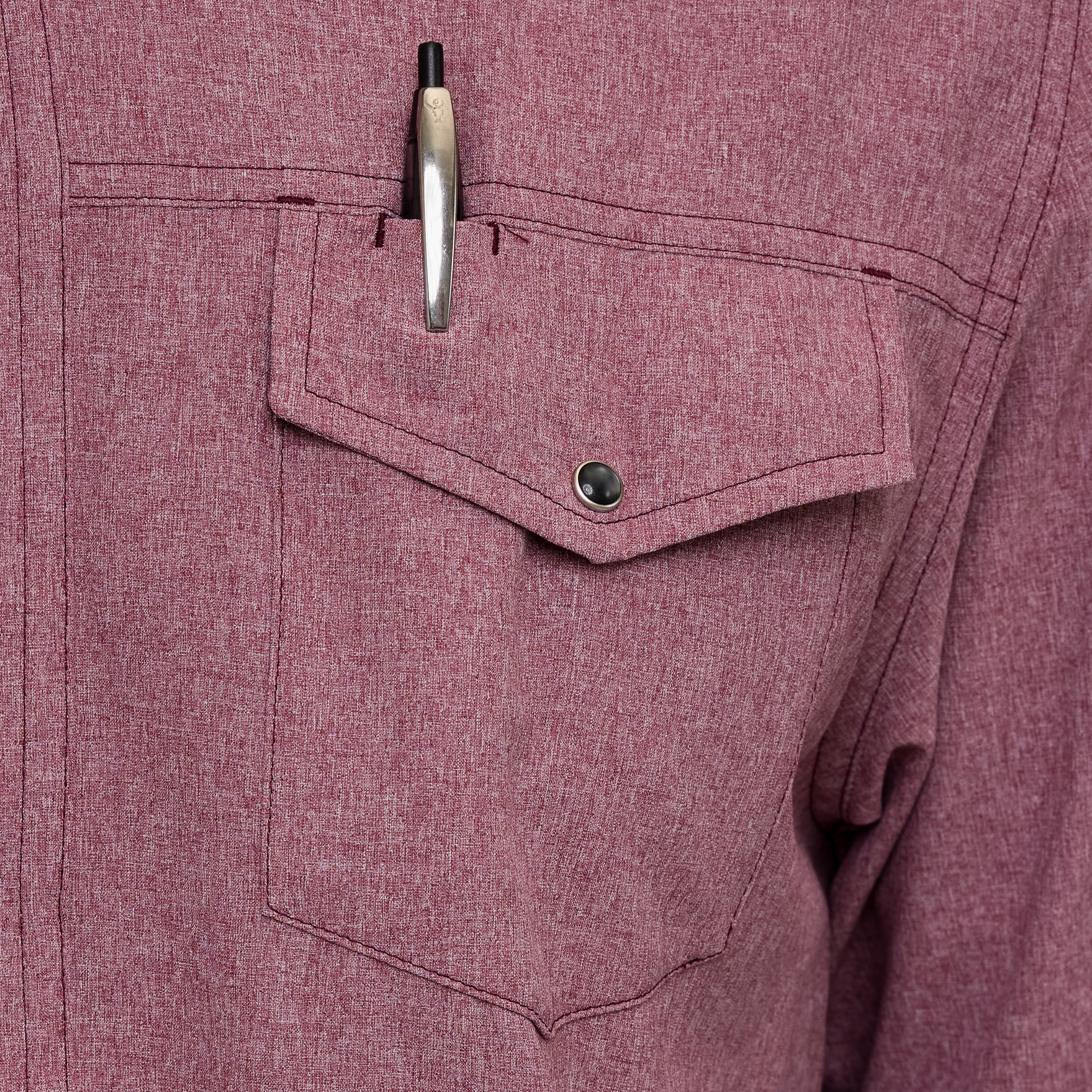 As sweat drips down the brow of the man built by hard work, this shirt stands ready to perform. Wrinkle and stain-resistant, moisture will not hinder your grind as this shirt blends practicality with style. The pearl snap chest pockets and western yoke are nods to a storied past of cowboys and open ranges, while mesh-lined vertical vents and UPF 50+ protection cater to the principles of hard work and adventure still alive the fabric of America.