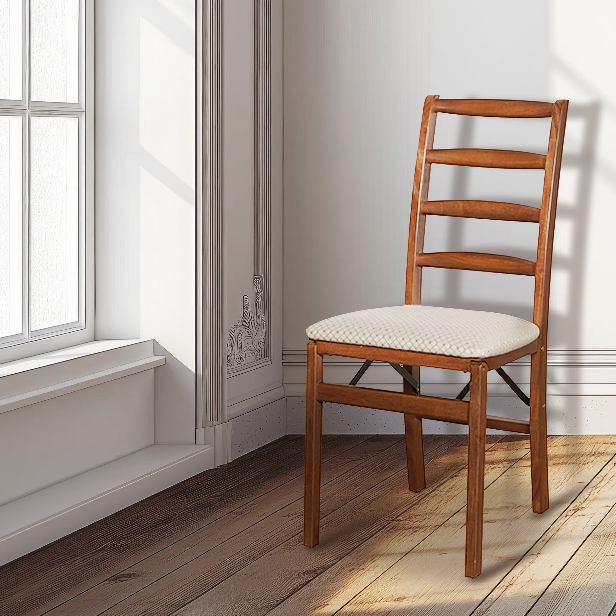 You don't need to worry about making your guest list for your next gathering a bit longer from now on. Whether you need extra seating for guests or a convenient option for everyday use, the 2 packs of Stakmore Shaker Ladderback Premium Solid Wood Dining Table Folding Chair Set with Fabric Padded Upholstered Seat from MECO is a versatile and stylish choice that will improve the look and functionality of any home.