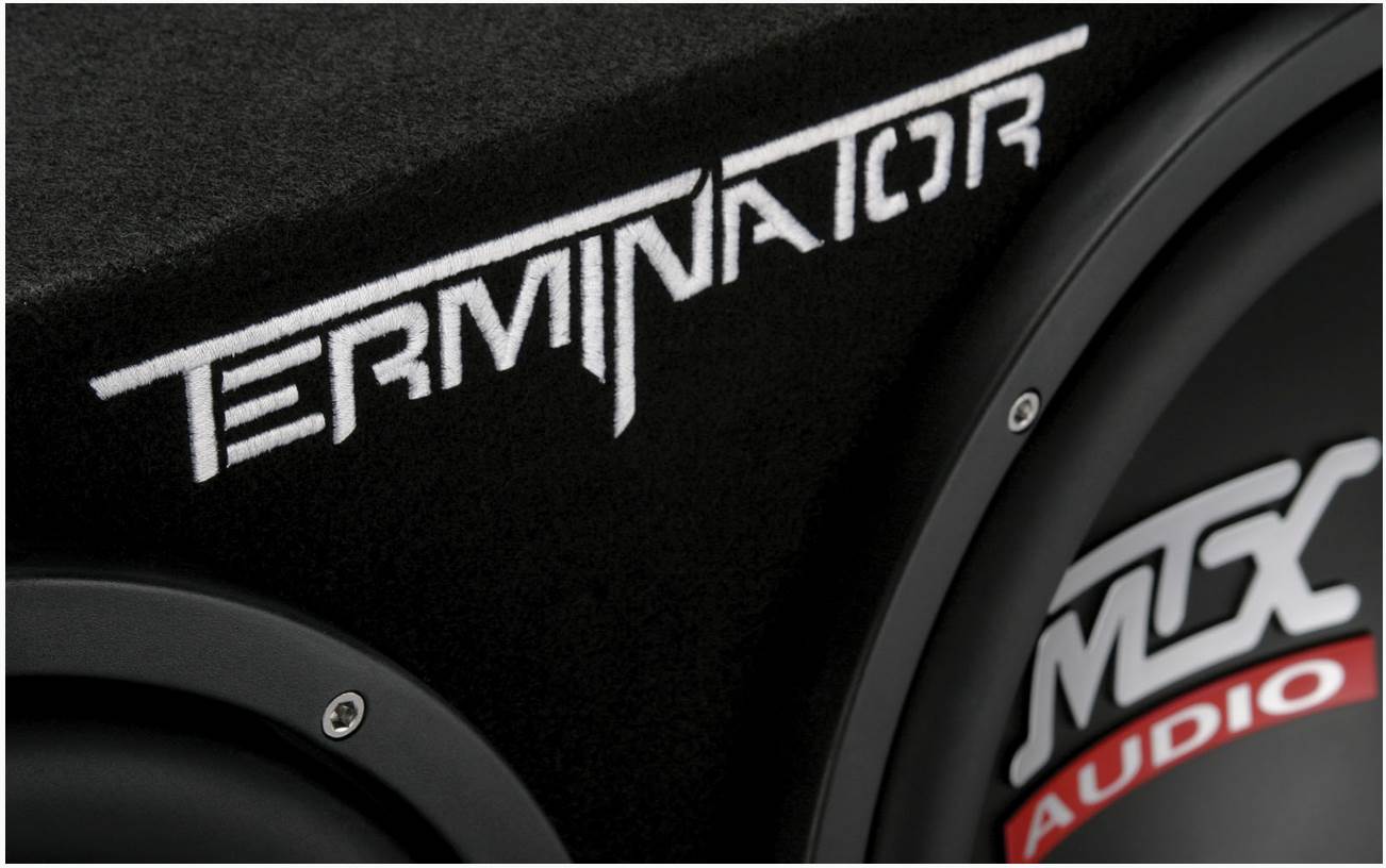 - MTX Terminator series subwoofer system includes 2 subs, sub enclosure and a car amp; Boasts 1200 watts max power and 400 watts RMS; Features rubber surround, polypropylene cone and a 2-inch aluminum single 4 ohms voice coil