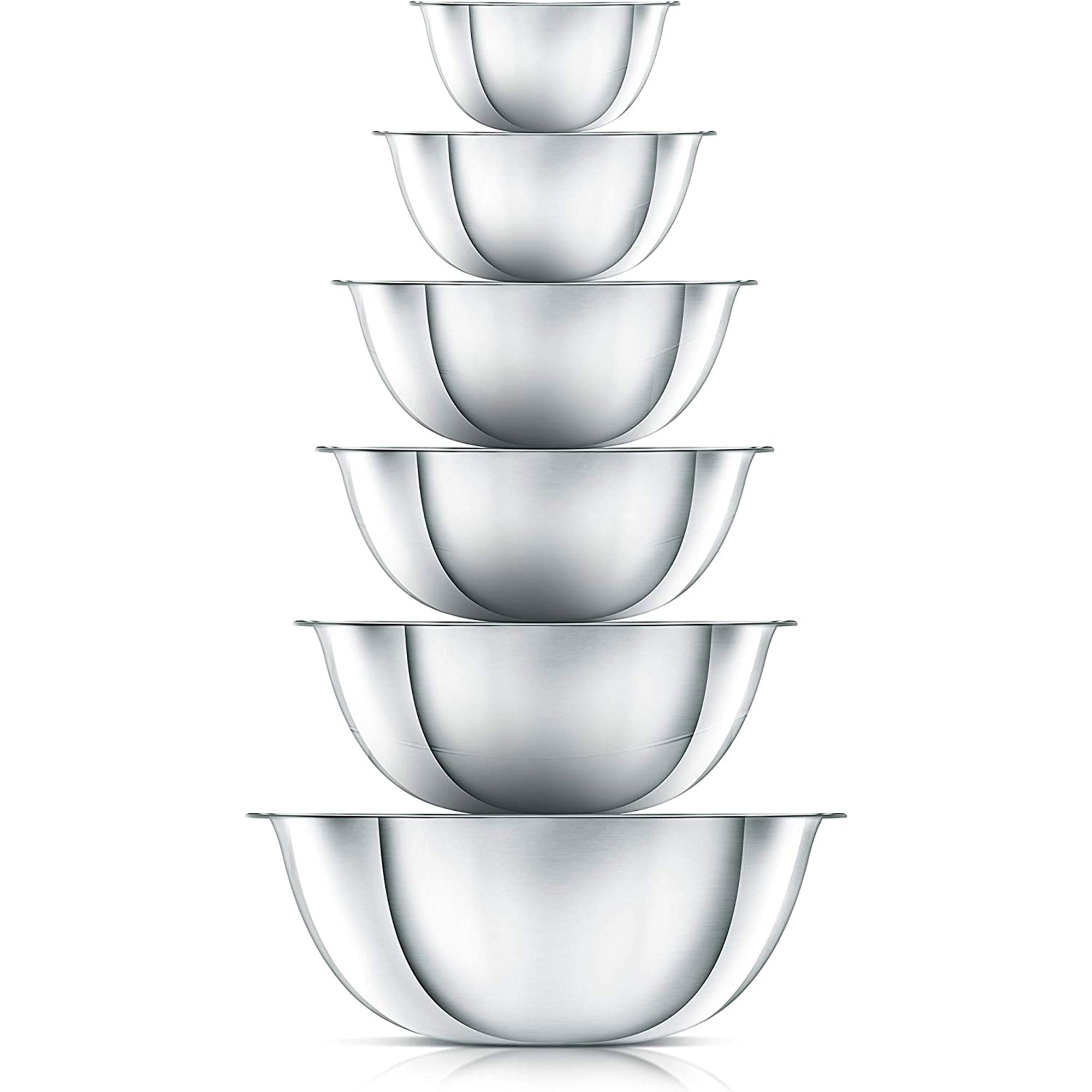 - 6-piece durable and reliable metal food bowl set perfect for food prep, serving, marinating, mixing, and more