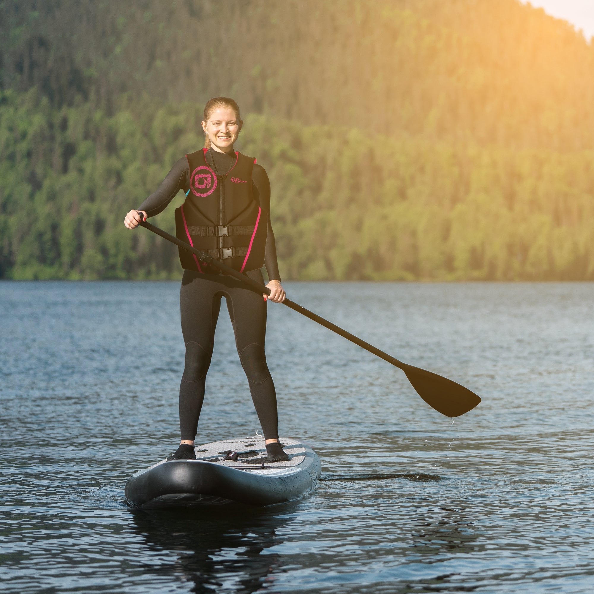 • Constructed from soft, lightweight neoprene, this life jacket delivers a luxurious and sustainable experience, prioritizing comfort during prolonged water activities