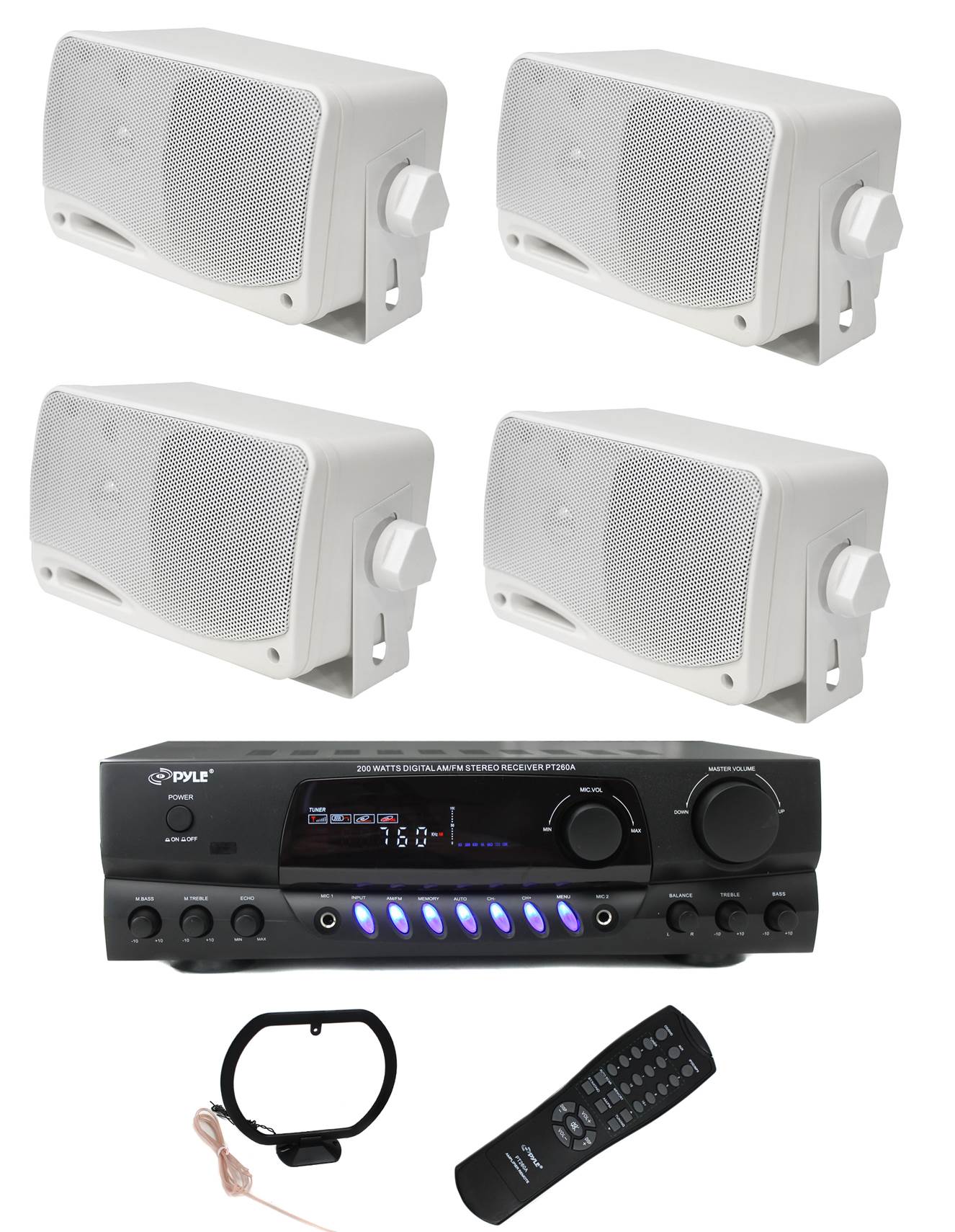PYLE PLMR24 3.5" 200W Outdoor Speakers 4pk & PT260A 200W Stereo Theater Receiver