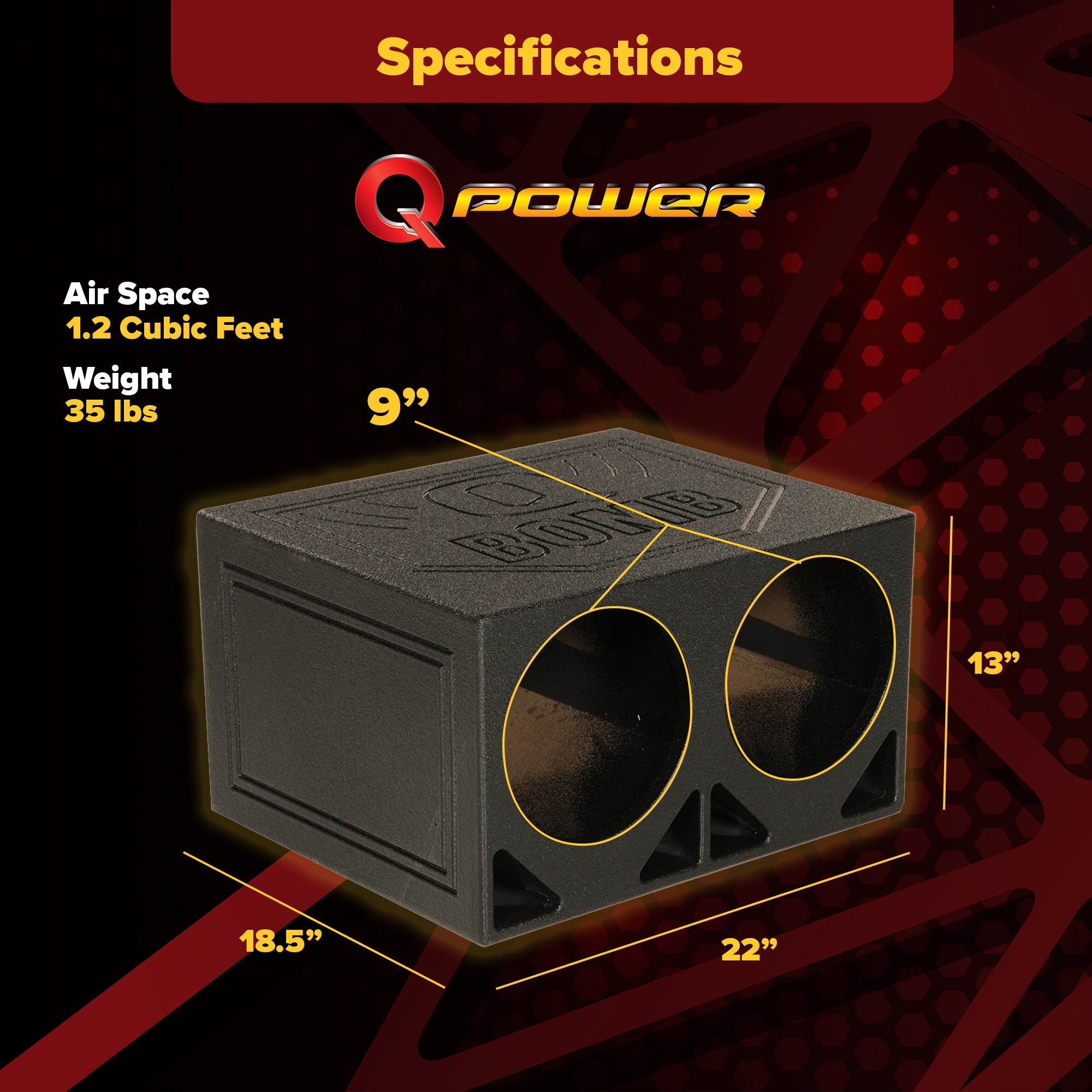 The Q Power QBOMB10TB 10 inch dual triangle ported subwoofer box kicks the music up to the next level with deep sounding and powerful bass.