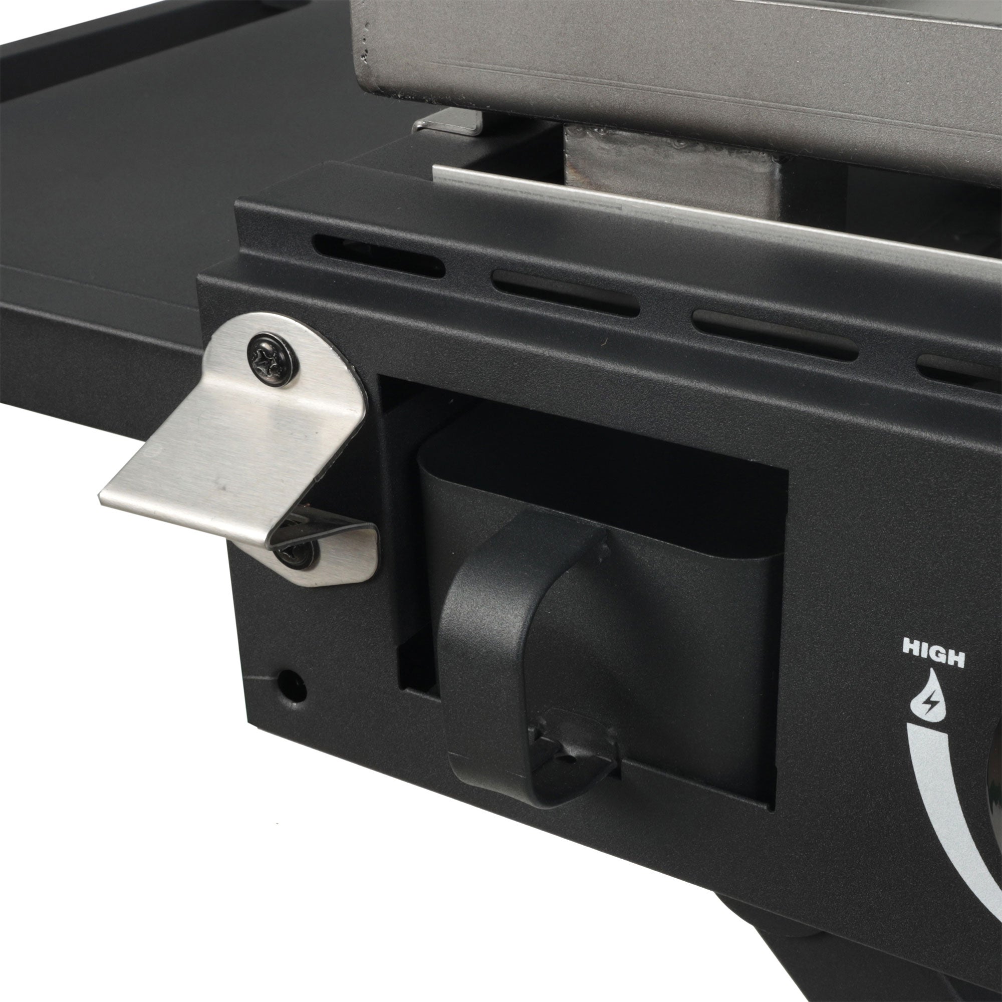Powered by 30,000 BTUs and equipped with stainless steel burners, this grill heats quickly and evenly for efficient cooking. The easy push-and-turn ignition system ensures a hassle-free start every time. Cleanup is a breeze with the front access drain and cup, making grease disposal simple and mess-free.