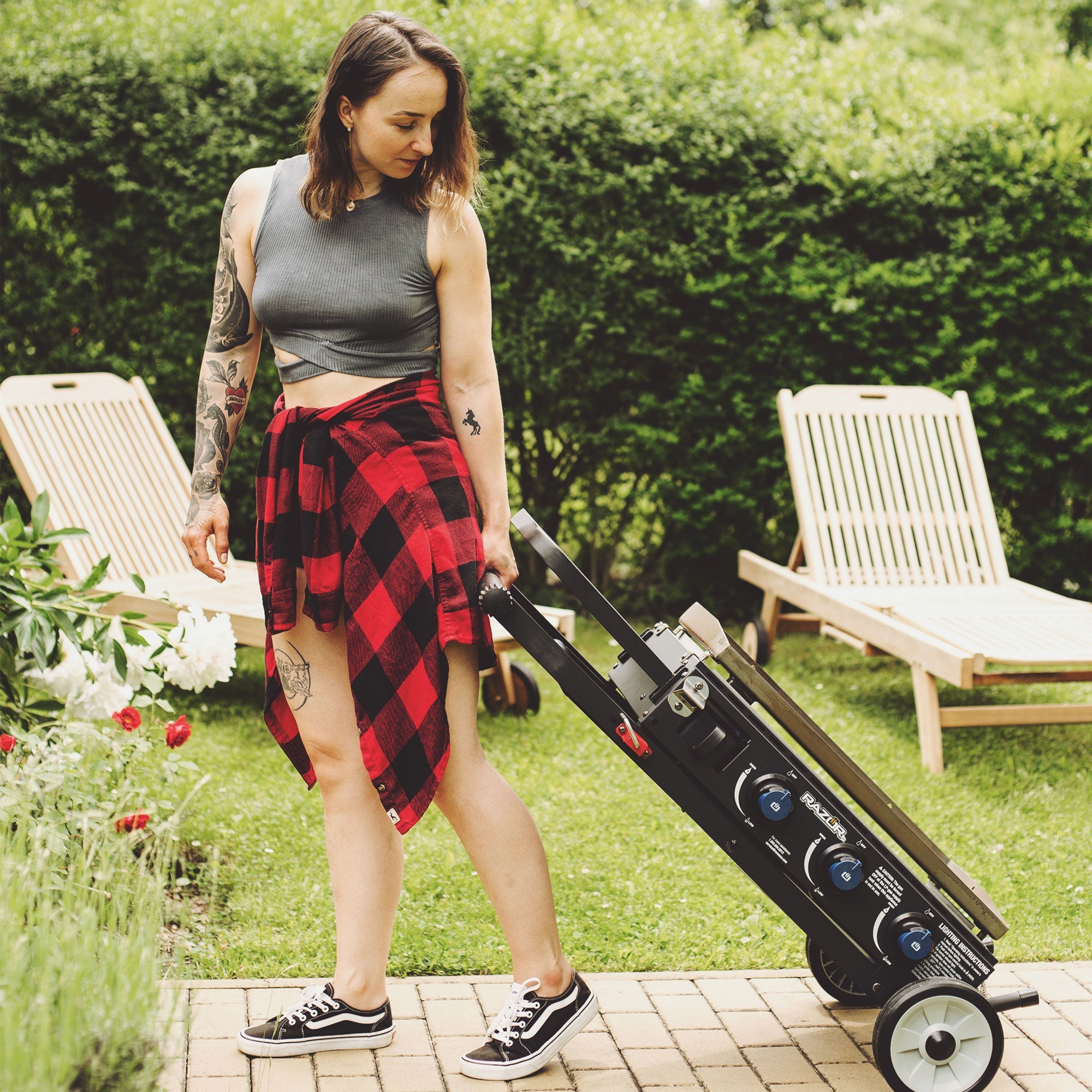 Upgrade your outdoor cooking experience with this versatile Gas Grill and Griddle Cart from Razor, designed to offer the best of both worlds. With its convenient scissor-fold configuration, this portable grill is perfect for camping trips, backyard barbecues, tailgates, and outdoor gatherings, providing easy mobility wherever you go. The rolled steel, pre-seasoned griddle top delivers 400 square inches of cooking surface, large enough to grill up to 31 burgers at once, ideal for feeding the whole family or a group of friends.