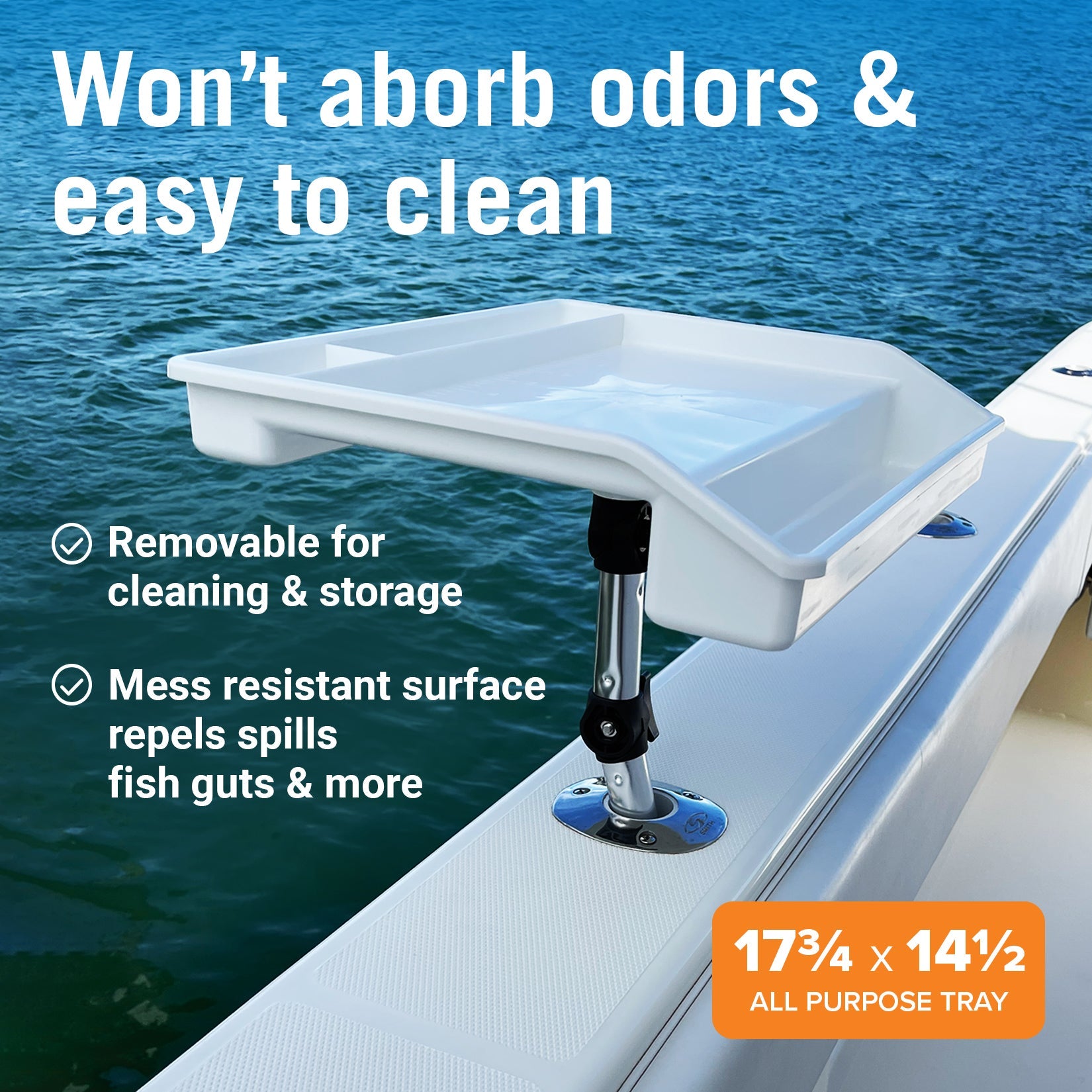 • MULTIPURPOSE TRAY: This boat table makes the perfect bait cutting station or filet table for boat. Use it as a fish cleaning board or a boat dining table or bar drink station. The perfect first mate for fishing center consoles or pontoon boats.