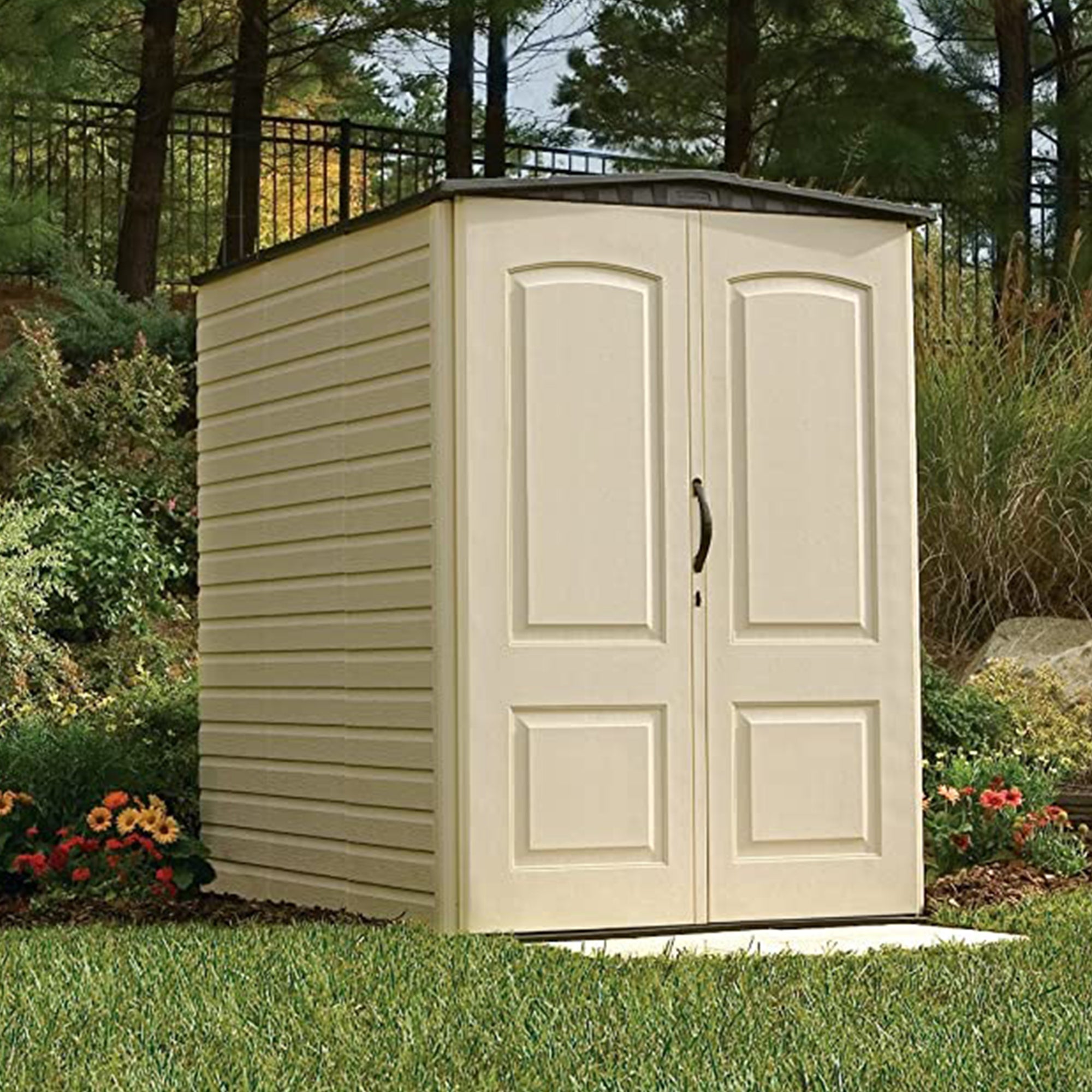 - Slim 159-cubic foot storage shed leaves enough room to still enjoy your outdoor space
