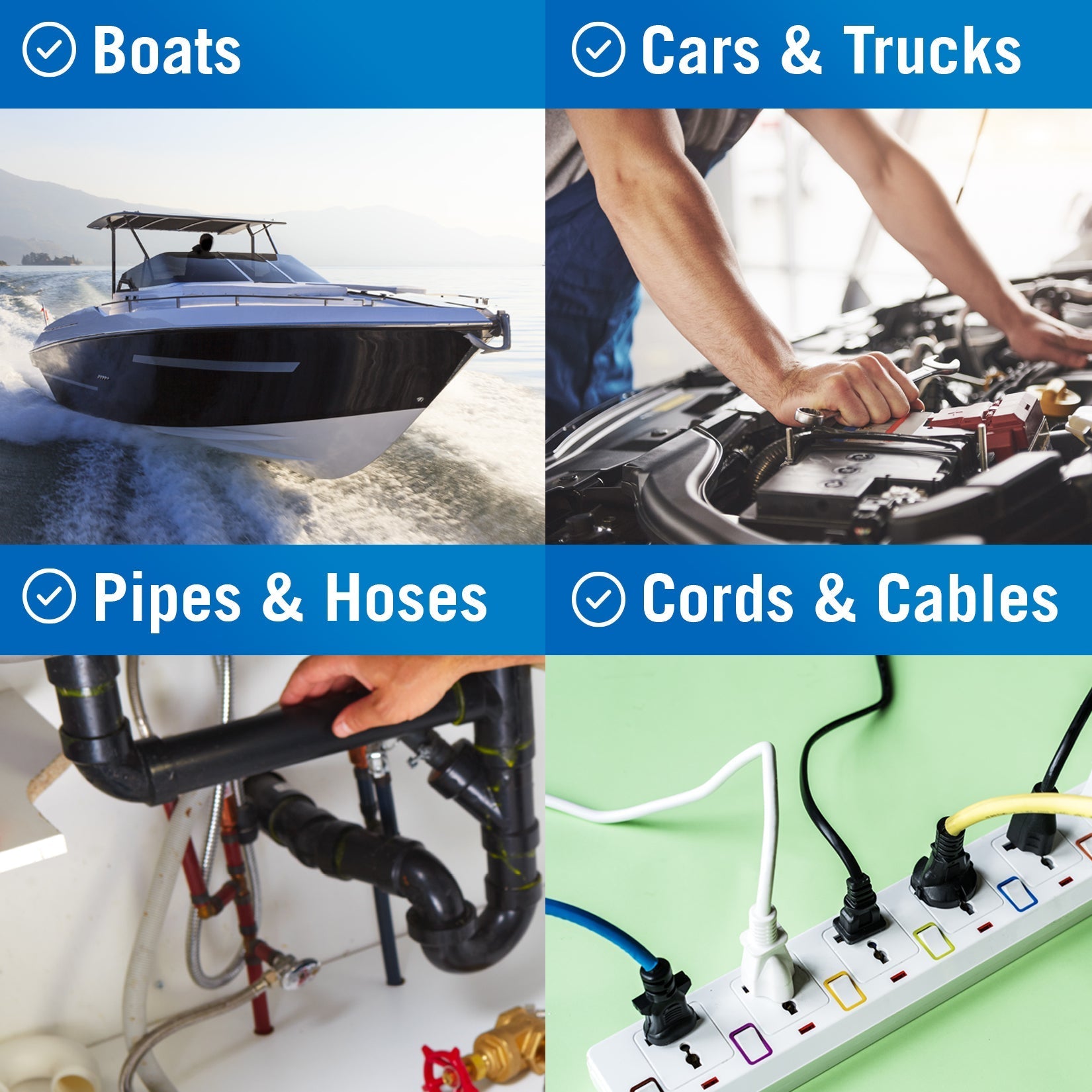 - HEAT & CORROSION RESISTANT: Our self fusing tape resists corrosion and extends the useful life of items being repaired. This silicone tape for plumbing creates a water-tight seal and works to fix leaks. Our ultra-strong, high temp silicone rubberized tape can be used to fix car engines, water heaters and more! This self sealing tape is extremely versatile and perfect for emergency repairs around your home, boat or car. Also works great as garden hose tape and tape for pipe leaks!