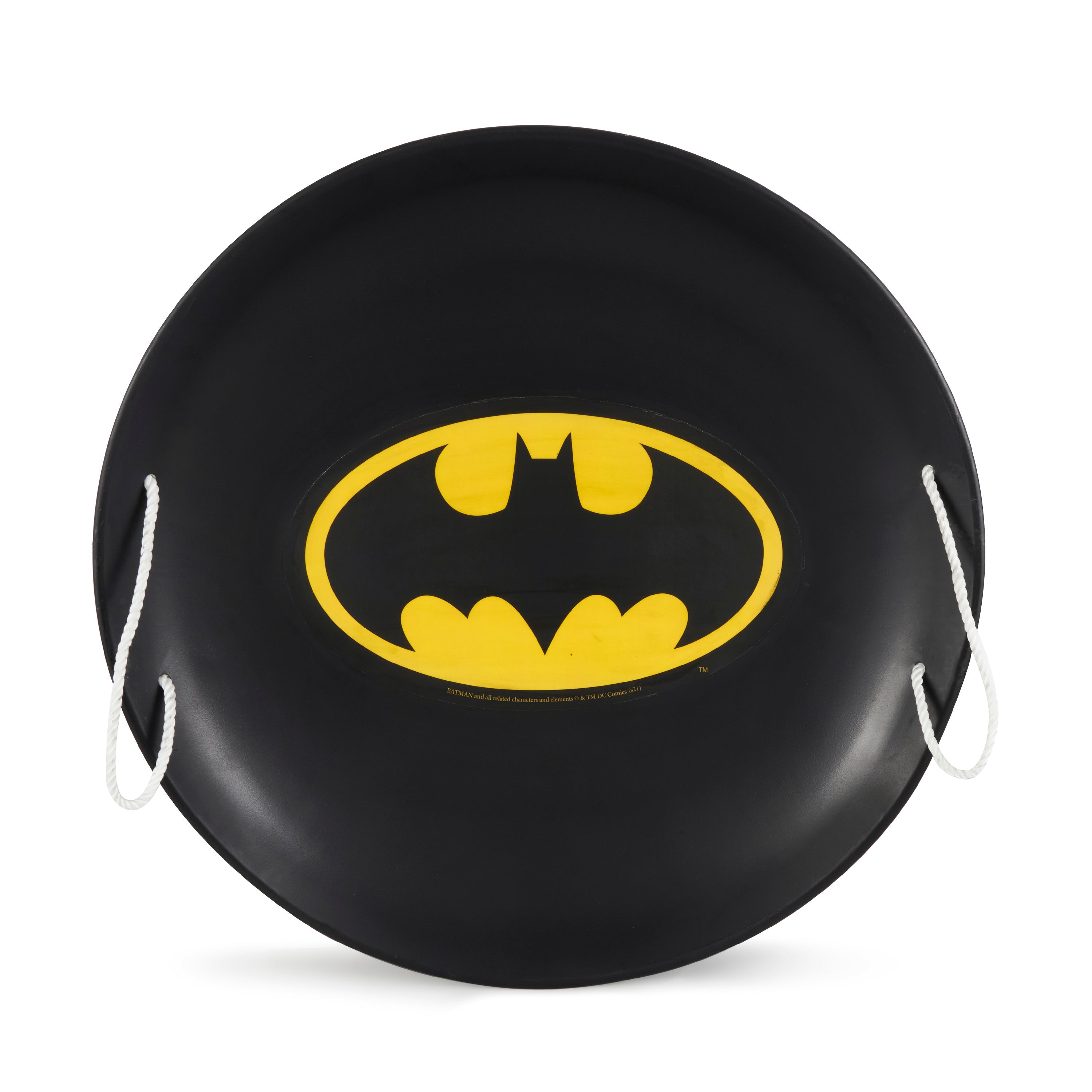 This super-hero worthy sled is built with an enduring aluminum/iron alloy to create excellent sledding memories year after year. This classically designed saucer sled is equipped with 2 secure grip rope handles and a glossy base for swift and maneuverable rides down the powdery hills. The handles make carrying this disc back up the hill effortless as well as allowing you or your kiddos to don it as a shield for outstanding protection in impromptu snowball fights. Coated with a layer of vibrant paint and symbol you will easily be able to spot your sled among the others at the sled hill after you and your super kids break for some hot chocolate.