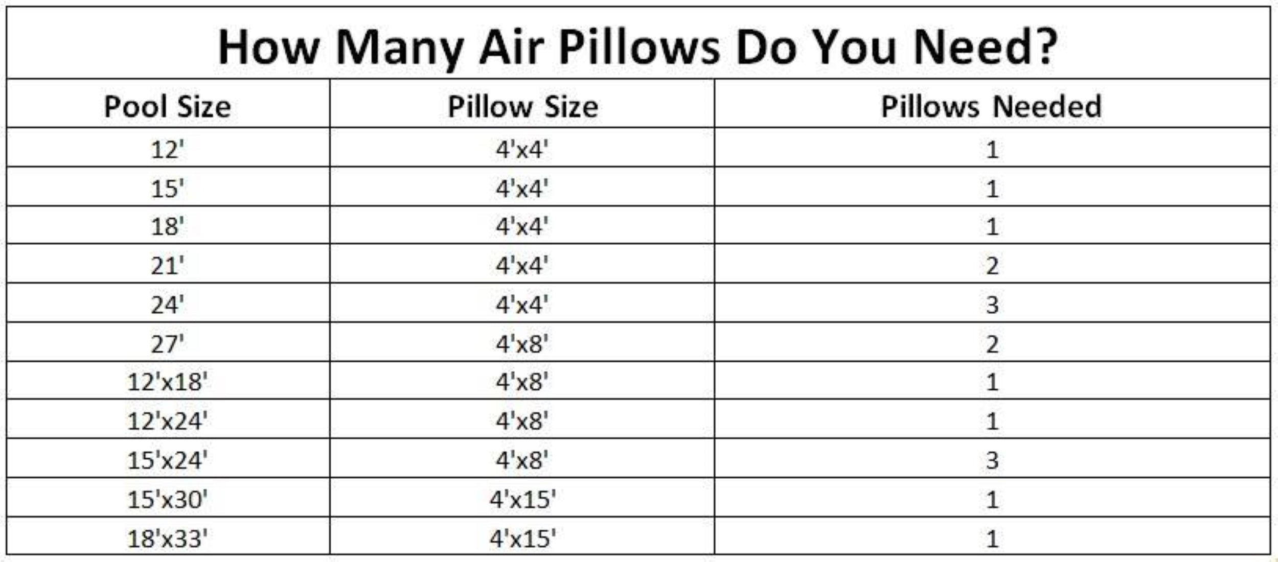 The Swimline 4 x 4-Foot Air Pillow is the ultimate companion to any winter pool cover. This Swimline air pillow will keep your pool and cover safe from ice in the winter months because it helps to keep water off of your pool cover. The pillow pushes your pool cover up off the water's surface so the water won't freeze to your pool cover, helping to prevent damage to your pool cover during the during the cold off season. When inflated, it measures 4 x 4 feet big.