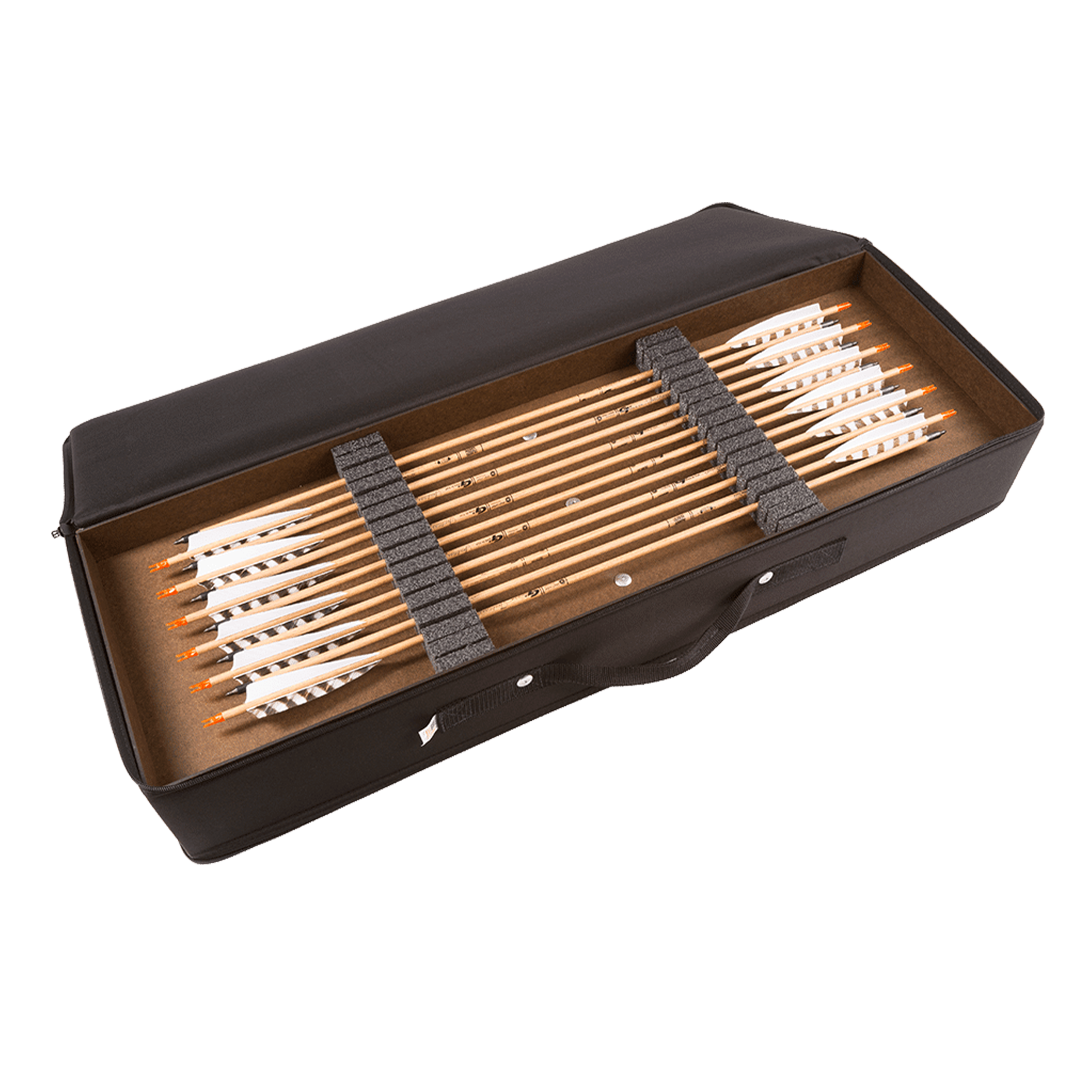 • Flip side holds up to 24 arrows held securely in foam inserts