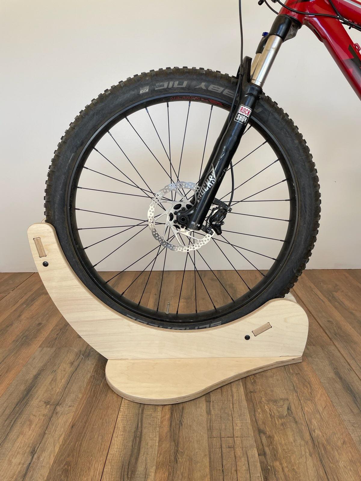 The WHEELIE bike stand is a perfect for storing your bike in the garage without using up wall space. Made from all natural Baltic birch. This bike display stand holds your bike and prevents it from tipping over. We know how your garage storage changes over time and this stand gives you flexibility to change where you store your bike as your life changes!