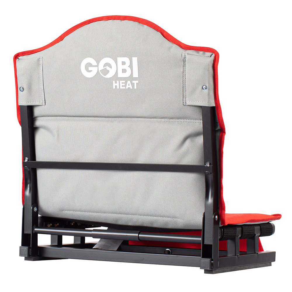 The Vantage Stadium Seat from Gobi Heat is the newest offering in our line of outdoor chairs and outdoor gear. The 7.4V 6500 mAh battery powers two heat zones across 3 heat settings: low (113°F / 9 hrs), medium (122°F / 6 hrs), and high (131°F / 4.5 hrs) Fully charge your heated portable camping chair in 3-4 hours for an industry leading 9 hours of electric warmth. Vantage takes portable heat to the next level. Featuring an easy to carry handle and pockets for your phone, keys, and other valuables, Vantage will keep you comfortable and warm all day long. For sporting and entertainment events, Vantage will save your behind from those cold bleachers. Vantage features a strong back for support and comfort. This portable seat comes equipped with Gobi Heat’s battery, which also charges your phone while keeping you warm. Vantage is the most durable and reliable rechargeable heated stadium seat out there. Purchase portable comfort like you’ve never experienced before. Vantage comes available in Flare, Midnight, and Slate.