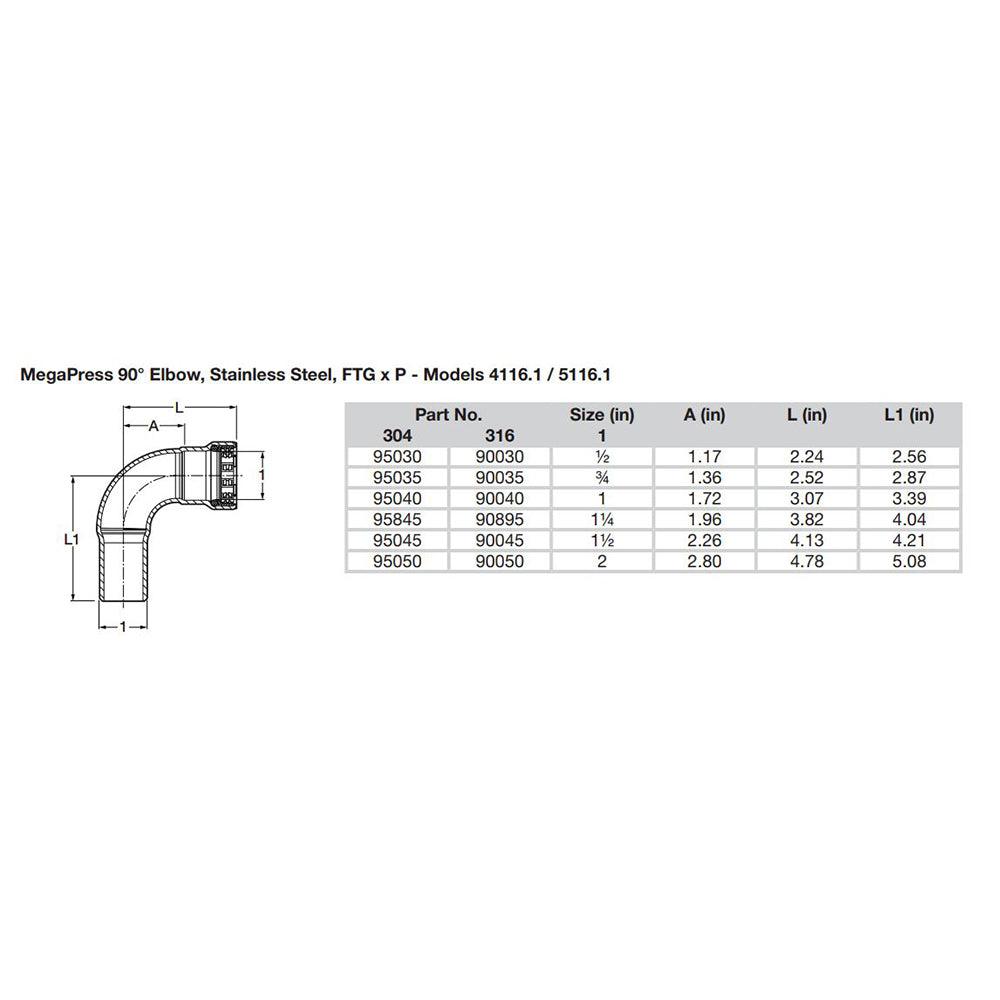 MegaPress 1" 90° Stainless Steel 304 Elbow Street - Press Connection - Smart Connect Technology