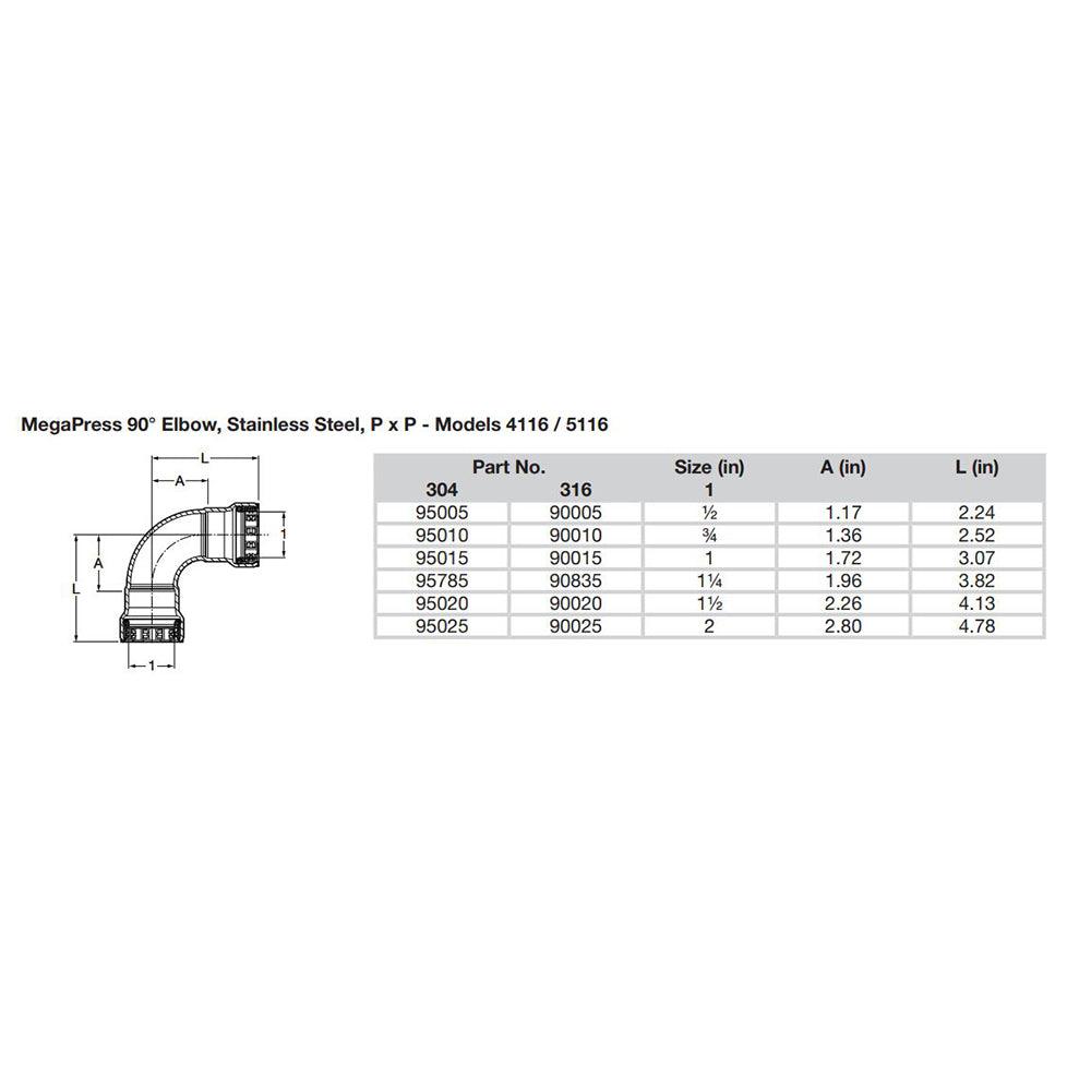 Viega MegaPress 2" 90 Stainless 304 Elbow - Double Press Connection - Smart Connect Technology