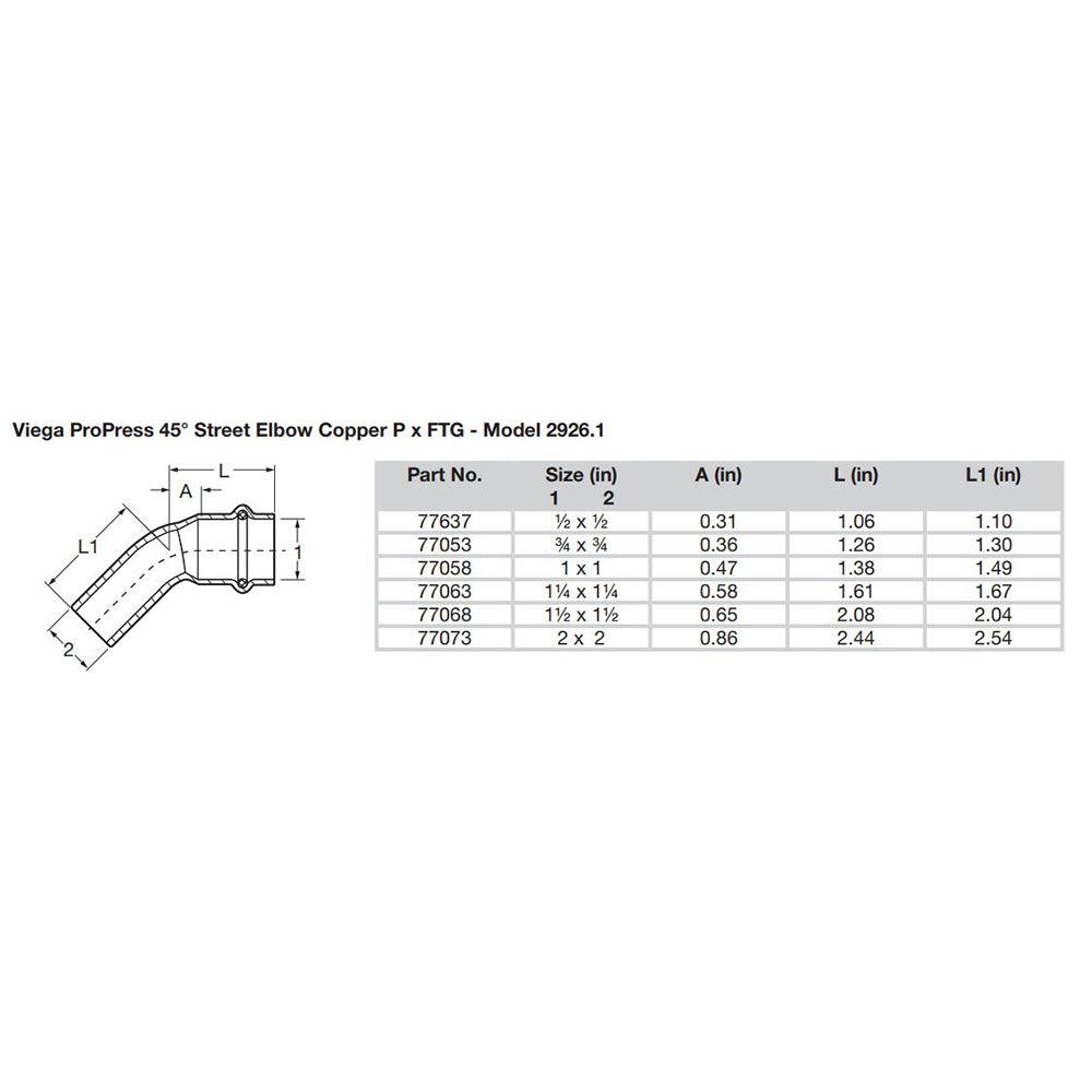 Viega ProPress 2" 45 Copper Elbow - Street/Press Connection - Smart Connect Technology