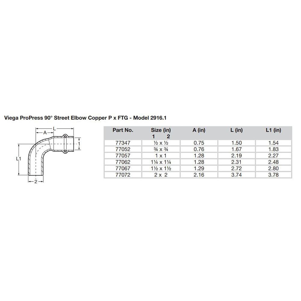 Viega ProPress 2" - 90 Copper Elbow - Street/Press Connection - Smart Connect Technology