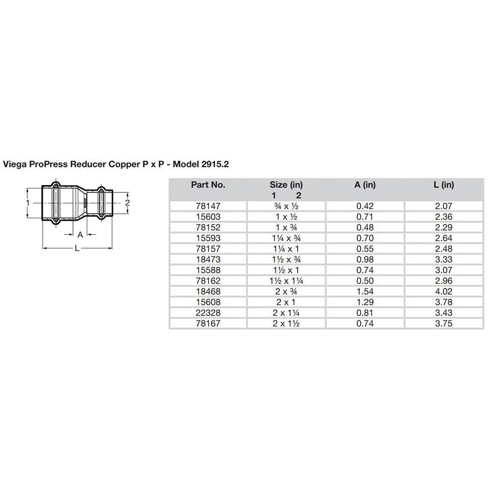 Viega ProPress 2" x 1-1/2" Copper Reducer - Double Press Connection - Smart Connect Technology