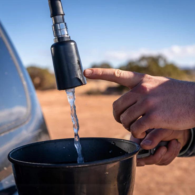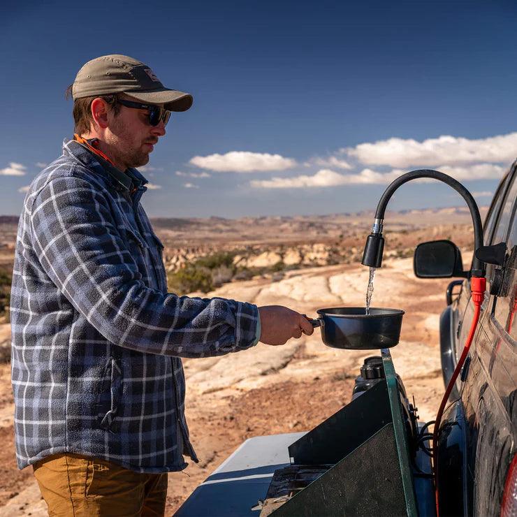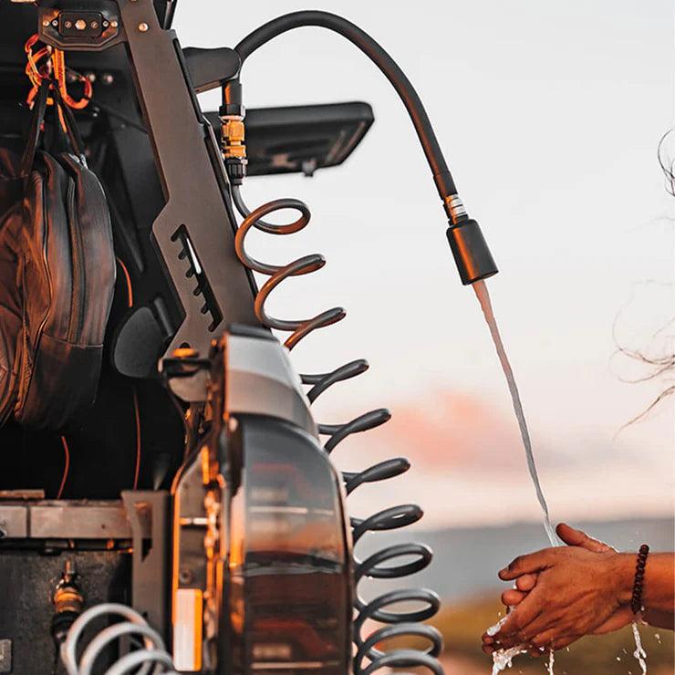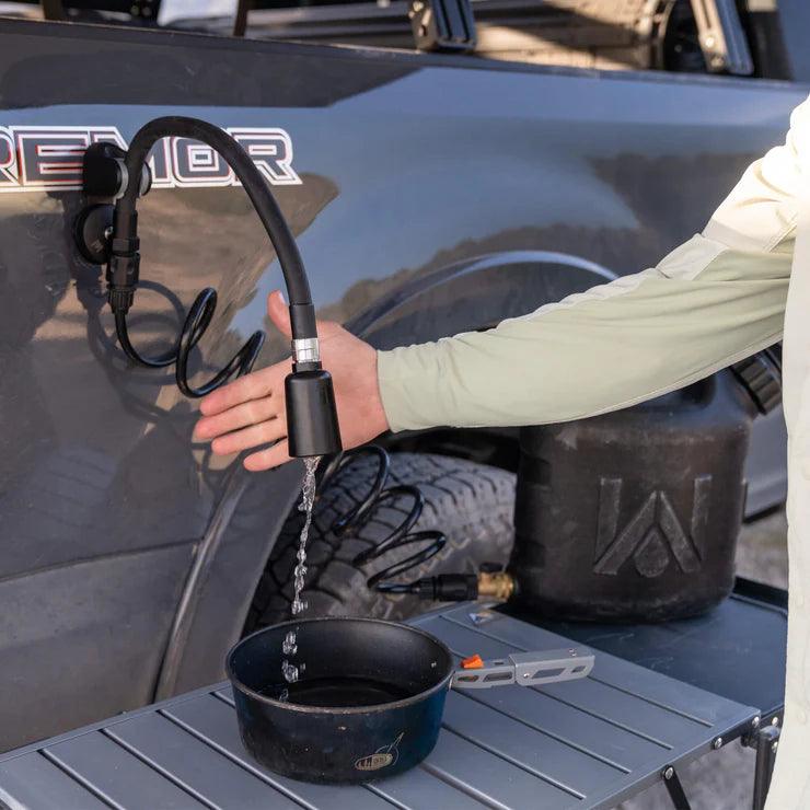 - Flexible 18” Hose & Secure Suction Mount – Direct water where you need it with ease, whether for a camp shower, portable sink, or gear wash station.