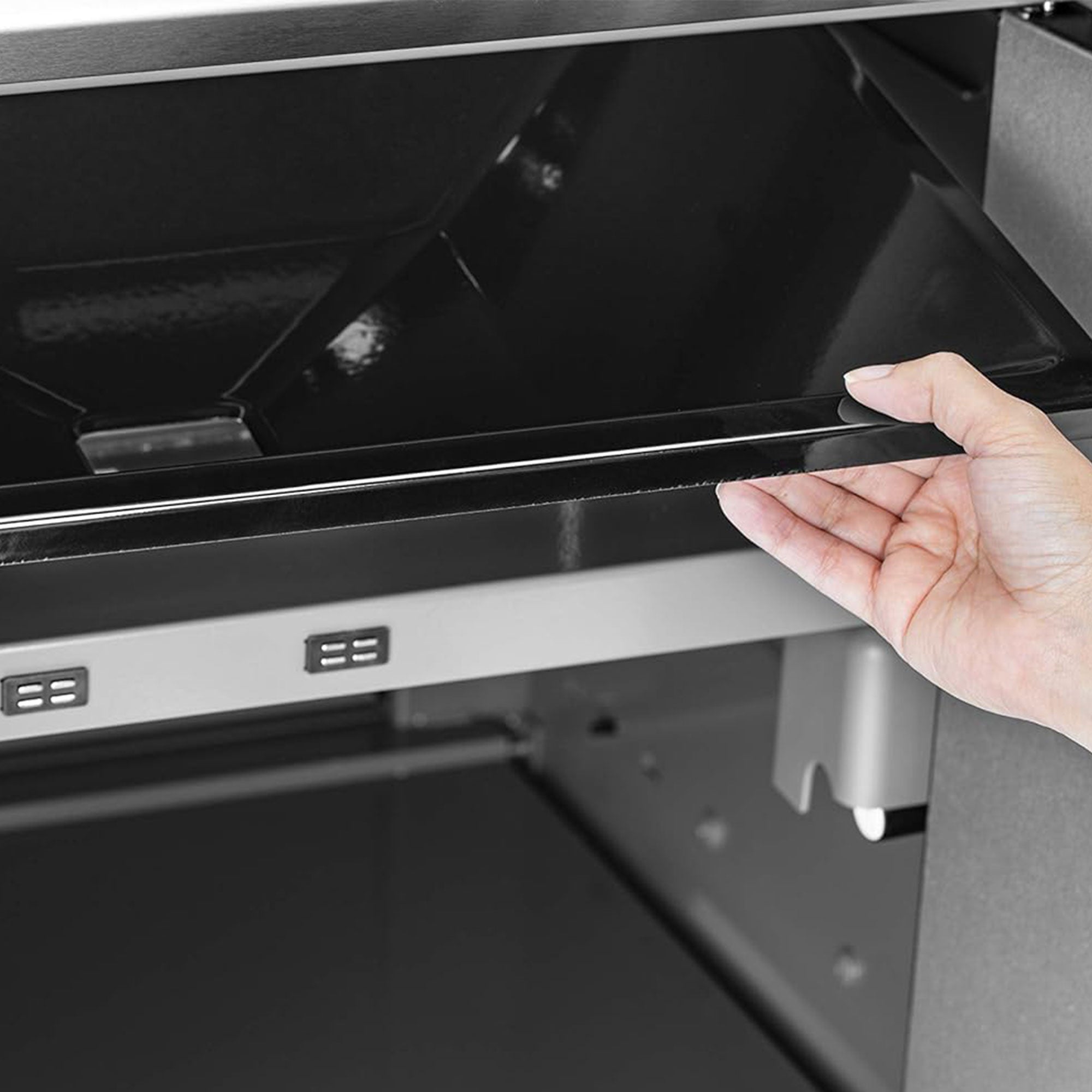 Avoid surprise fuel shortages with the easy-to-read gauge by the gas tank (natural gas only). Keep a close eye on fuel levels for seamless grilling sessions. Drippings not vaporized are channeled away into a disposable drip tray under the cook box, maintaining cleanliness effortlessly.