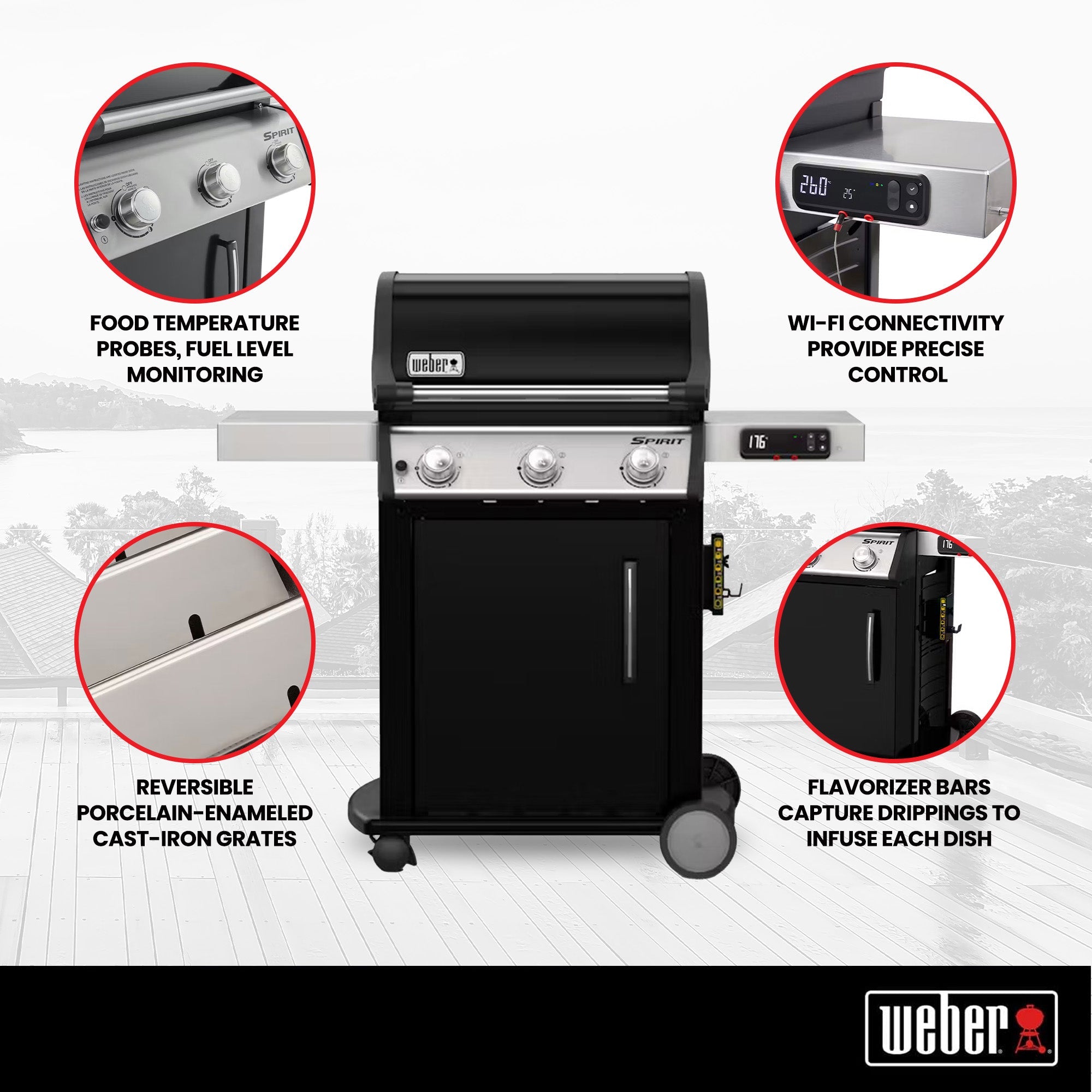 Experience culinary excellence with the Weber Spirit 529-Square Inch Freestanding Cast Iron Natural Gas Grill.