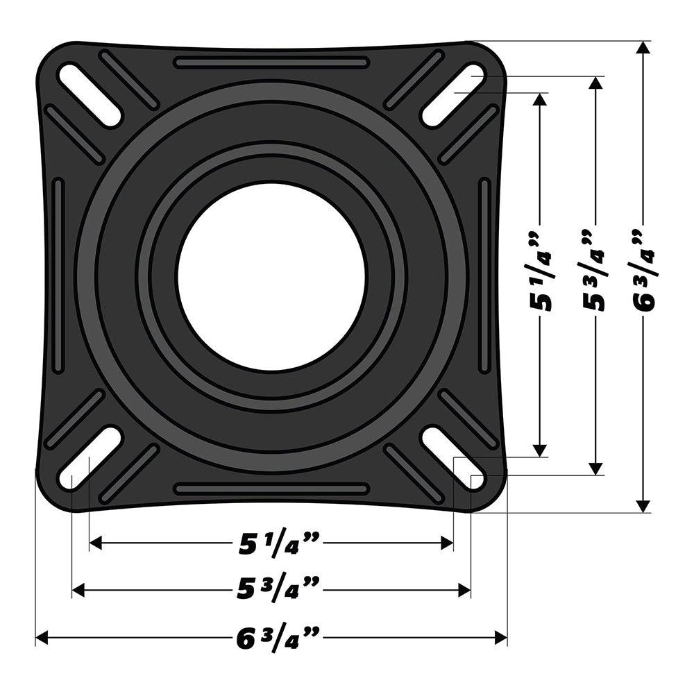 This boat seat swivel has a 5-1/4" hole pattern and is compatible with most seats.