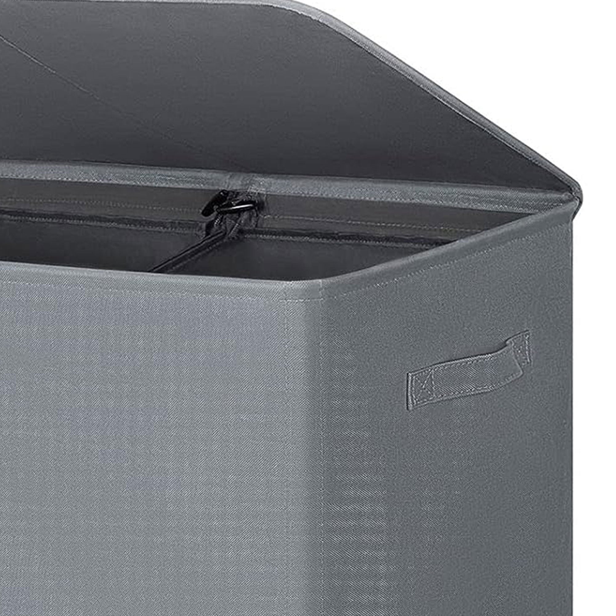 Keep your laundry out of sight and discreetly concealed with the sturdy and fixed lid. Close the lid to conceal odor or loads of laundry, or leave the lid open and hang items over the front as a display. Transporting your laundry is a breeze, thanks to the convenient side handles and the collapsible design is perfect for slim storage. The 2-section design allows you to separate darks from lights, making laundry day a breeze. The 2 included removable liner bags with handles make laundry tasks even more convenient, and they can double as clothing storage bags.
