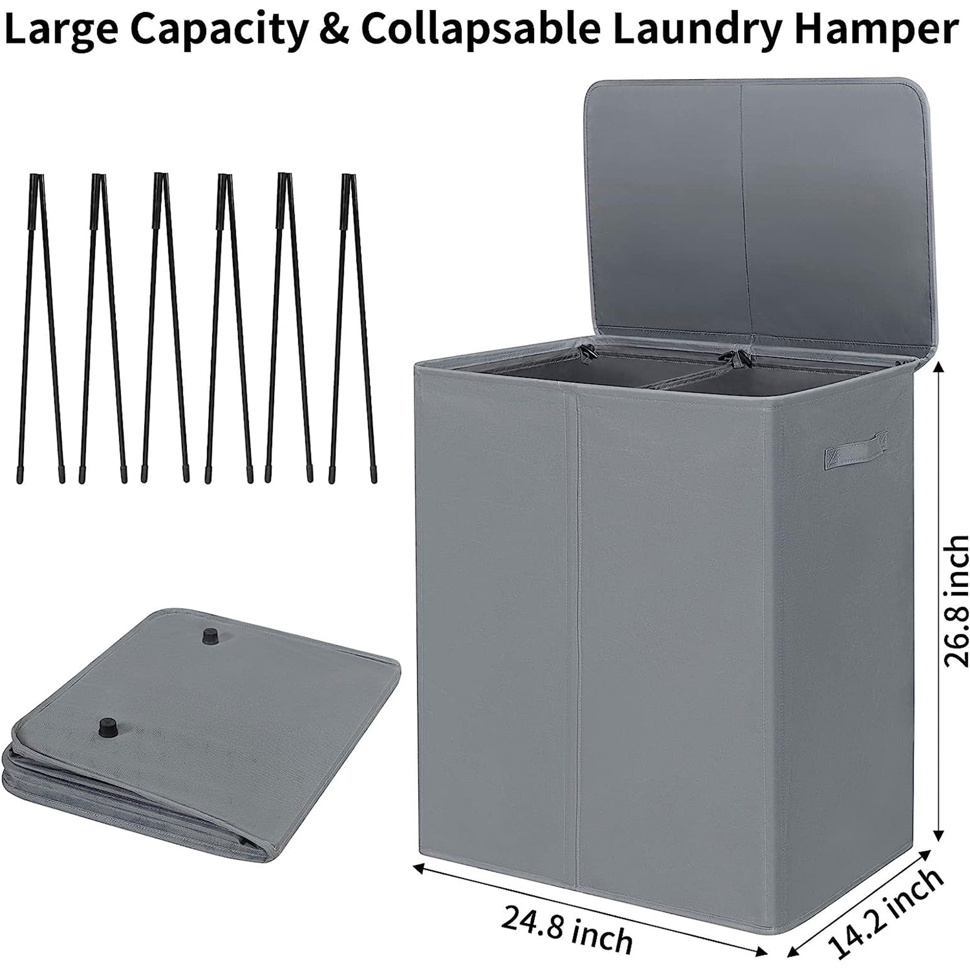 WOWLIVE 154L Fabric Double Laundry Hamper with Lid and Removable Bags, Gray