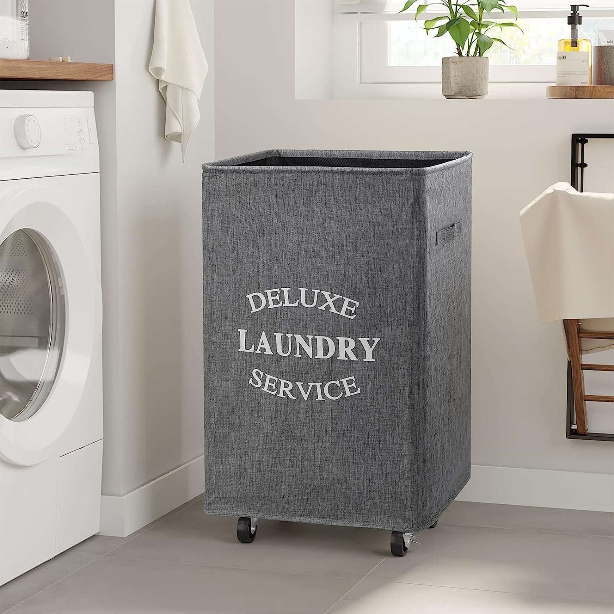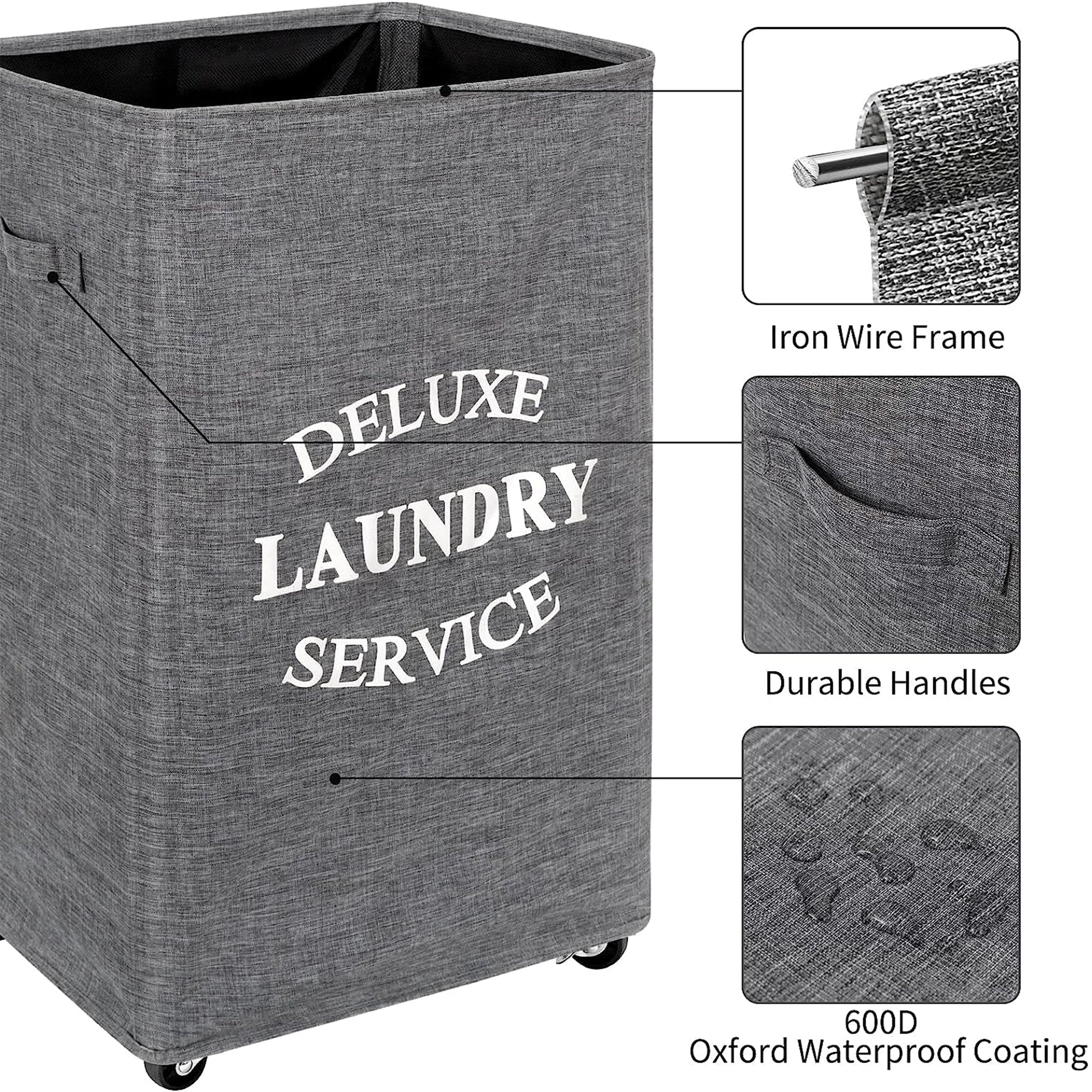 WOWLIVE 90L Rectangular Deluxe Laundry Service Rolling Basket, Heathered Gray