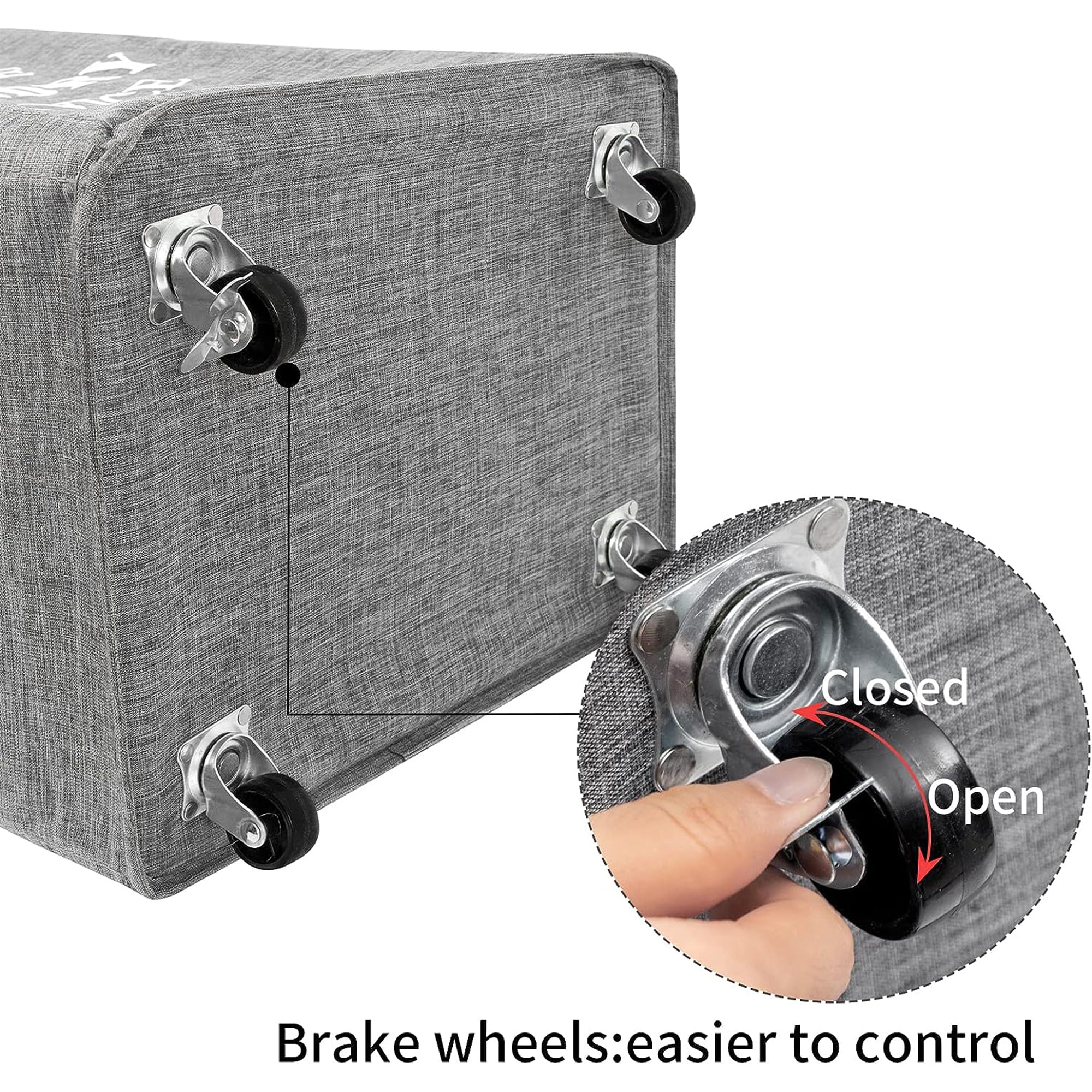 This collapsible laundry basket on wheels effortlessly glides around your home, making laundry day a breeze. Crafted with durability in mind, this laundry carrier is designed with waterproof high-density Oxford fabric and has an integrated, cinchable mesh top which ensures your clothes stay safe and secure during transport. The rolling design and handles provide effortless movement with wheel locks to ensure your laundry basket doesn't wander away. Its foldable design allows for easy storage when not in use, making it a space-saving marvel in any home. Ideal for large families, college students, or anyone seeking an efficient laundry solution, this rectangular hamper guarantees to revolutionize the way you manage your laundry. No more backaches or cluttered laundry rooms.
