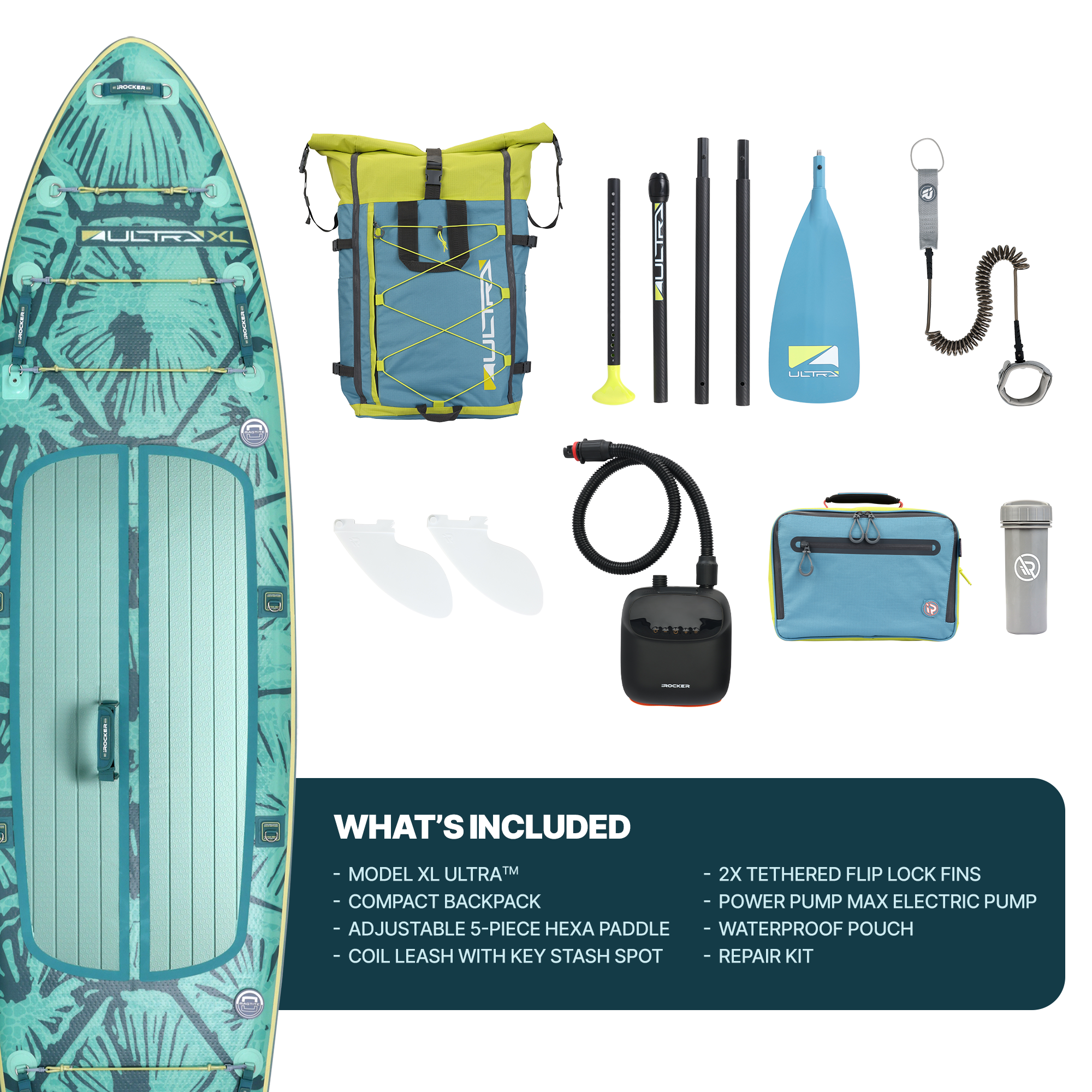 The XL ULTRA™ is the most spacious board in the ULTRA™ lineup—measuring 11’6” long and 34” wide—providing ultimate stability whether paddling solo, with kids or pets, or carrying extra gear. Despite its generous size, it’s surprisingly lightweight (19–21 lbs) and folds down 50% smaller into a compact backpack for effortless storage and travel.