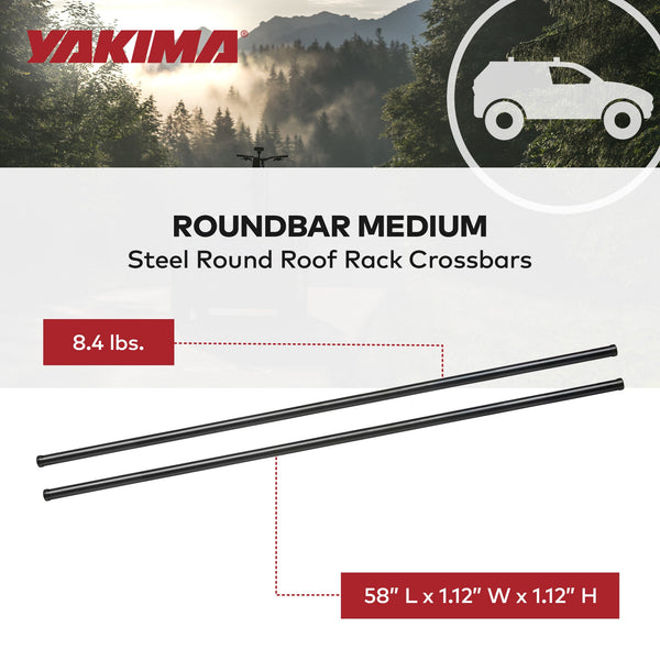 Yakima RoundBar Medium 58” Steel Round Roof Rack System Crossbars, Set of 2