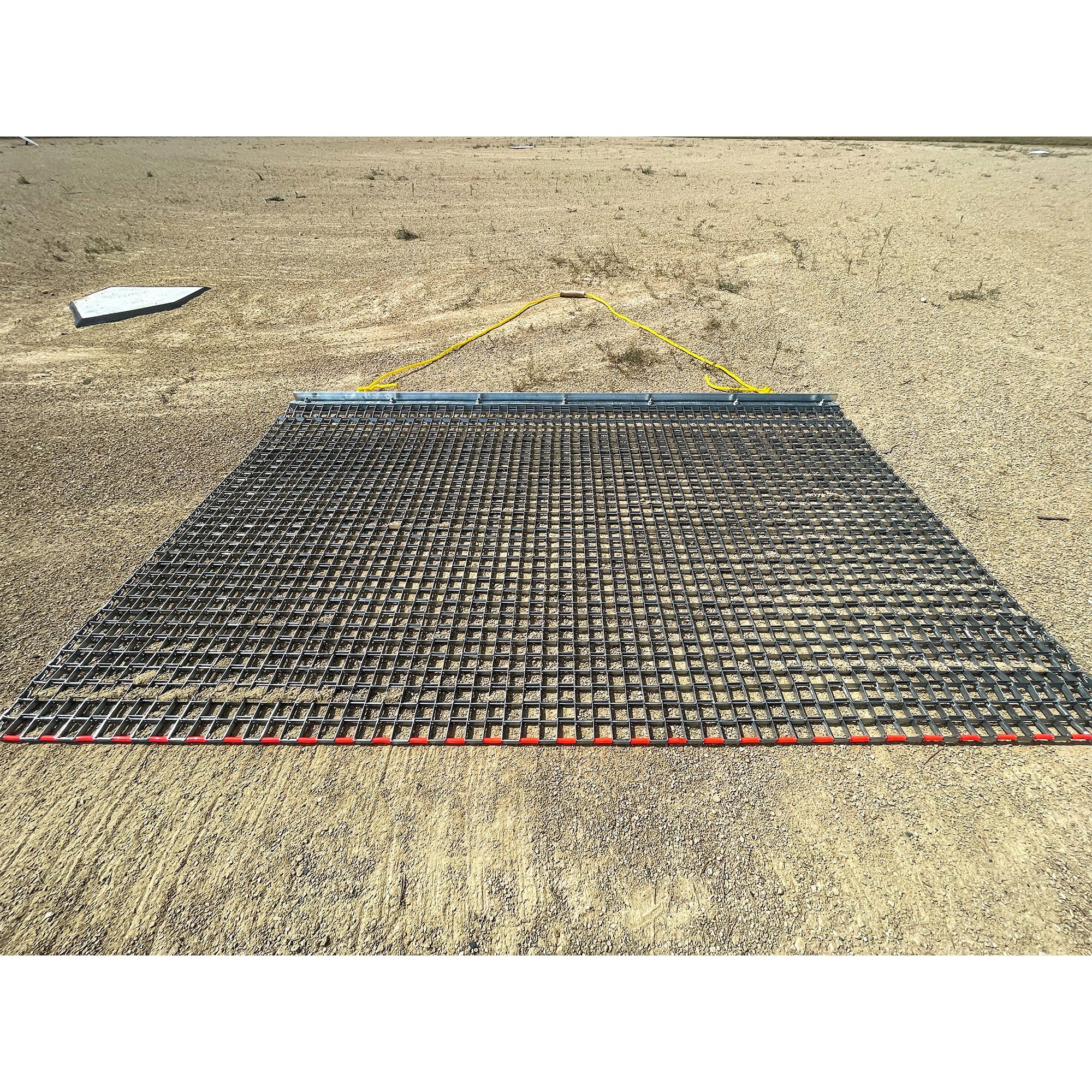Incorporating this drag mat into your maintenance routine saves you time and effort and guarantees professional-level results. It simplifies the task of leveling various outdoor areas, making it a must-have tool for homeowners, landscapers, and groundskeepers alike. The robust steel construction ensures durability and longevity, while the practical design allows for easy attachment to different vehicles. Plus, including hinges that bend to stay in contact with the ground ensures an efficient and effective leveling process.