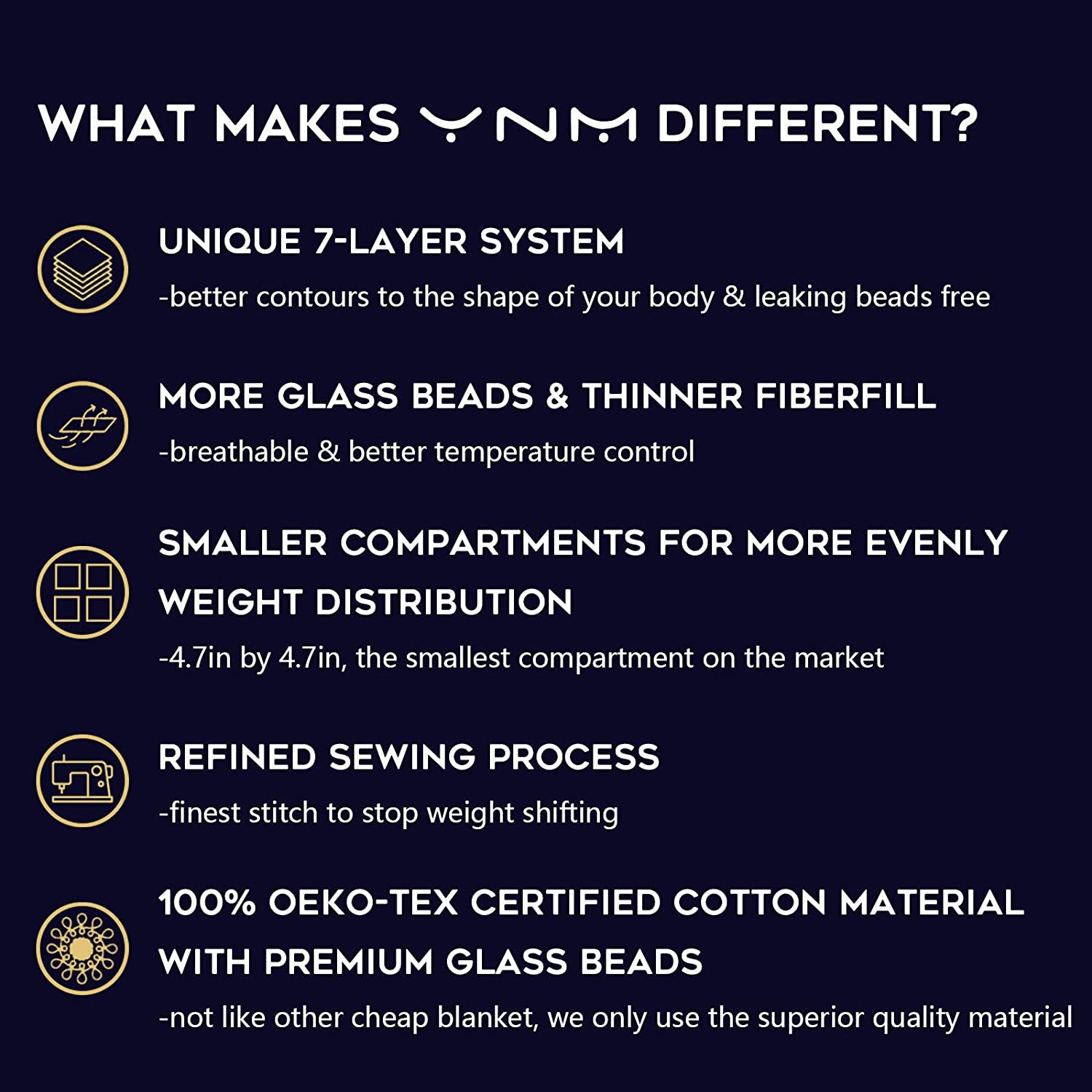 Sleep stress-free and experience ultimate relaxation with the YnM Original Cotton 80 x 87 Inch 25 Pound Glass Bead Weighted Blanket with Duvet Set.