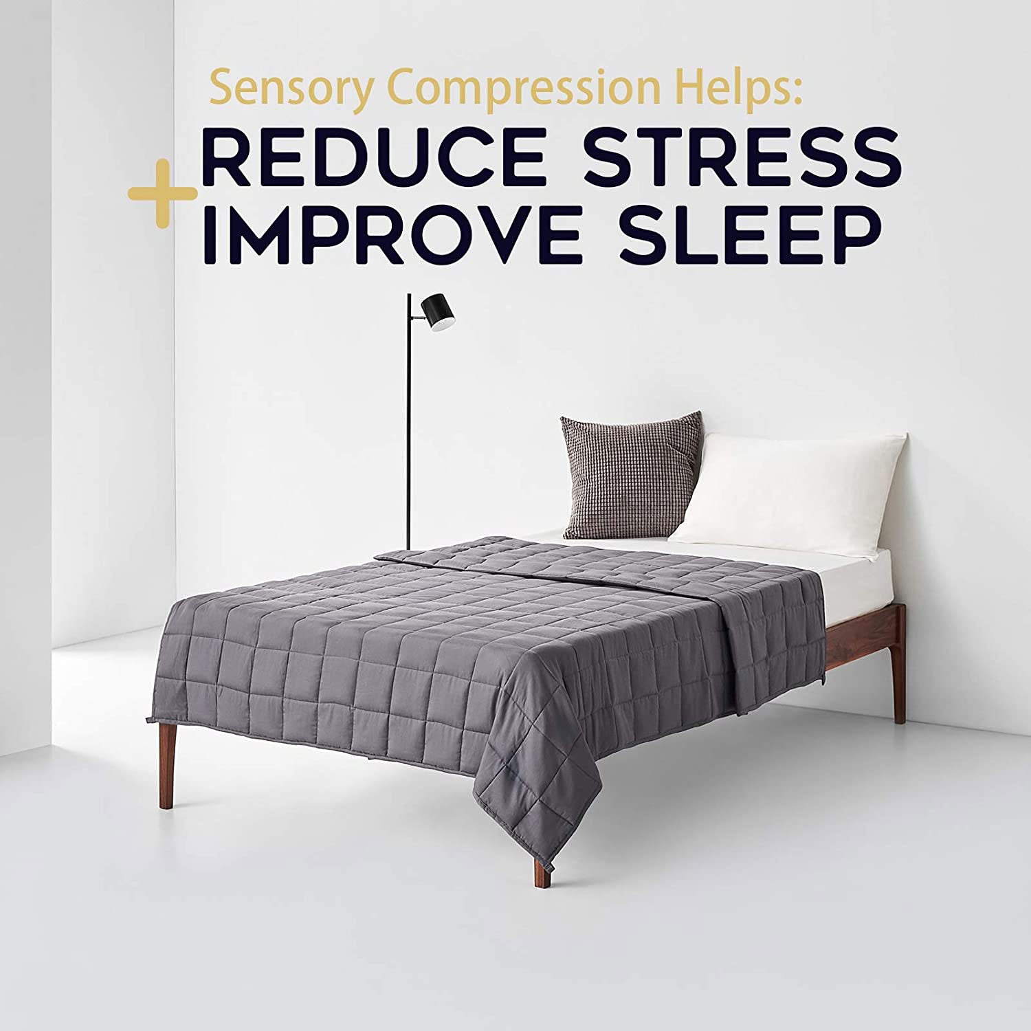 This 7-layer weighted blanket is made of 100% cotton for natural softness and durability. The advanced technology used to sew each blanket offers dependable strength that will allow you to use your blanket for years to come. At the center of each blanket are thousands of premium glass beads that give the blanket its heavy and calming weight. The beads are surrounded by layers of breathable cotton fabric that are ultra-soft and help to regulate body temperature. Small inner pockets hold the glass beads in place to ensure even weight distribution and allow the blanket to conform to your body. To find your ideal size, take 10% of your body weight and add 1 pound.